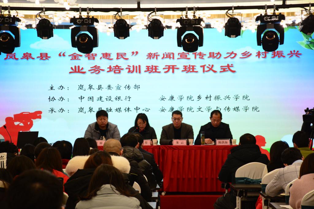 12月10日至11日,由岚皋县委宣传部主办,中国建设银行、BEAT365英国官网网站乡村振兴公司协办,岚皋县融媒体中心、best365英国在线体育官网共同承办的“岚皋县‘金智惠民’新闻宣传助力乡村振兴业务培训班”在岚皋县成功举行。BEAT365英国官网网站继续教育公司经理、乡村振兴公司副经理查芳,beats365唯一官方网站副经理朱云和岚皋县委宣传部常务副部长、融媒体中心主任陈洪海出席了开班仪式。