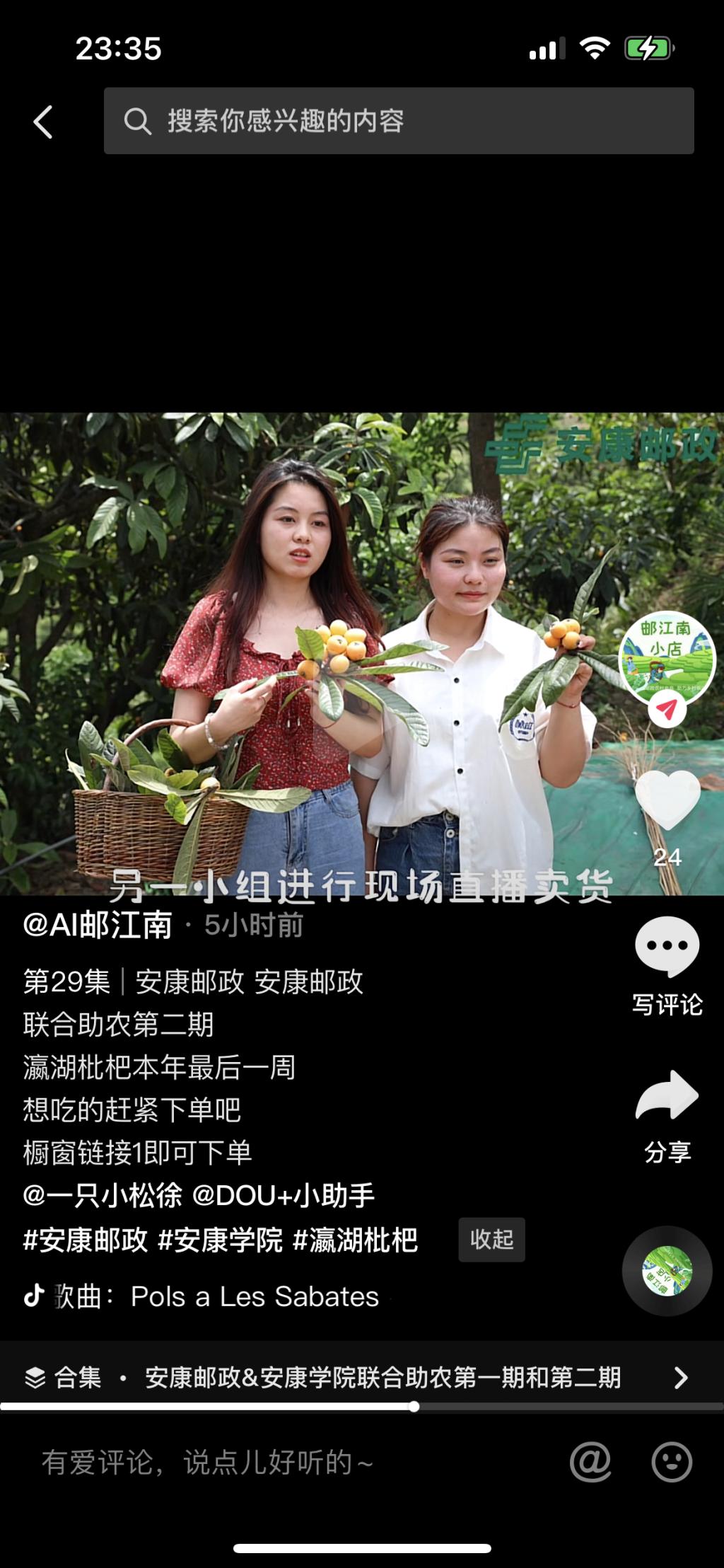 员工实习、见习更加强调融入地方经济文化建设,助力地方经济文化推广宣传,力求在真实工作环境中锤炼专业实践能力。本年度网络与新媒体专业员工通过专业见习1、采风实训等课程为安康汉滨区香溪洞景区旅游形象宣传拍摄多部宣传片。通过专业见习2与安康邮政江南分局成立校外直播实践基地,参与瀛湖枇杷推广项目策划、媒体运营、电商直播等实践活动,推广短视频作品70部,制作出的视频均已上传至邮政官方抖音账号Ai邮江南以及Ai邮安康,目前在线直播点击量已超过6万。