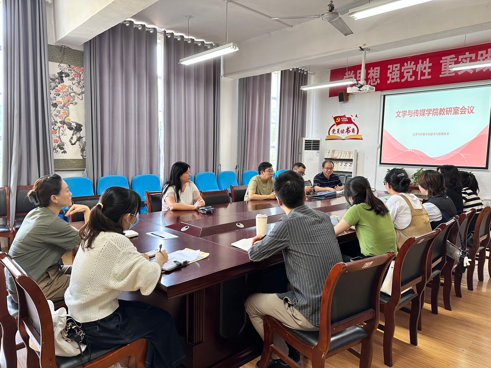导航痕迹 首页 > 教学科研 > 教学活动 > 正文 专业建设 教学团队 教研教改 教学活动 科学研究 国际交流 秘书与新媒体系召开新学期教研工作会议 来源:beats365唯一官方网站 发布日期:2023年09月15日 阅读次数: 9月13日,秘书与新媒体系组织本系全体教师在2307会议室召开新学期教研工作会议,系主任谭诗民主持会议。 首先,谭诗民介绍了秘书学、网络与新媒体专业2023级人才培养方案前期修订情况,就理论课程、实践课程、毕业论文(设计)从大纲修订过程中课程目标设定、思政元素引入、考核体系安排及课程目标与毕业要求的支撑关系等方面进行了解读。参会教师踊跃发言,讨论了修订过程中遇到的问题,提出了相应建议和解决办法。 随后,谭诗民就近期听课情况进行了反馈,就本学期其他重点工作做了布置和安排,鼓励各位教师积极申报各类课程建设和教学研究项目。 最后,谭诗民带领大家学习了习近平总书记《在文化传承发展座谈会上的讲话》和教师节重要指示精神。 撰稿/摄影/刘锦 审核/李婷 发布/崔瑜