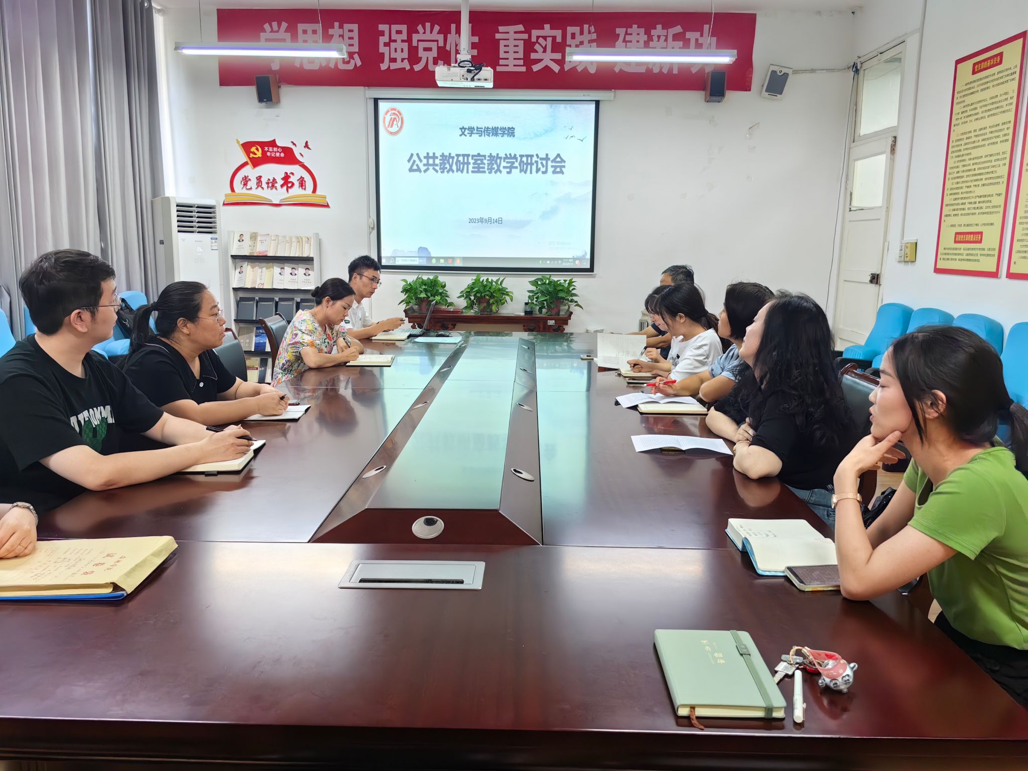 9月14日下午,beats365唯一官方网站公共教研室在江南校区2307会议室召开新学期教学工作会议暨“应用文写作”课程教改沙龙。会议由公共教研室主任黄治强主持,承担公共课程教学任务以及新闻写作方向教师参与会议,教学副经理李婷出席会议并对相关工作进行指导。
