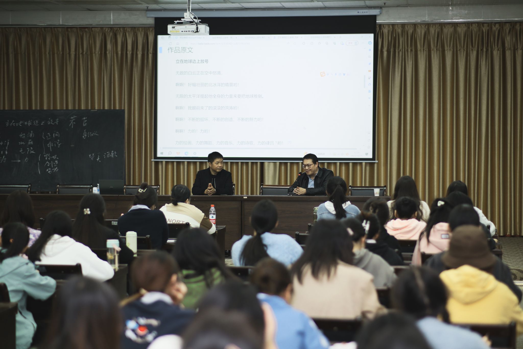 导航痕迹 首页 > 教学科研 > 教学活动 > 正文 专业建设 教学团队 教研教改 教学活动 科学研究 国际交流 第三届“中学语文卓越团队班”第二场讲座顺利举行 来源:beats365唯一官方网站 发布日期:2023年10月30日 阅读次数: 10月25日下午4点,省级教学名师张铁军应邀为公司第三届“中学语文卓越团队班”同学做了“《立在地球边上放号》教学展示与思考”学术讲座。本次活动在图书馆六楼报告厅举行,beats365唯一官方网站副经理朱云、班主任张格瑄和第三届“中学语文卓越团队班”参加了报告会。 张铁军老师以《立在地球边上放号》一文为例,深入阐释了中学语文诗歌教学中存在的问题和应对策略。讲座后,同学们积极参与互动,就中学语文教学中的一些疑难问题与张老师进行了深入沟通和交流。 讲座最后,副经理朱云作了报告点评。他首先表达了对张老师讲座的感谢,认为讲座紧扣诗歌教学的特点,并贯穿了员工中心的教学理念,希望同学们结合相关课程学习,深入领会讲座的丰富内涵。 撰稿/张格瑄 摄影/潘宇(员工) 审核/朱云 发布/崔瑜