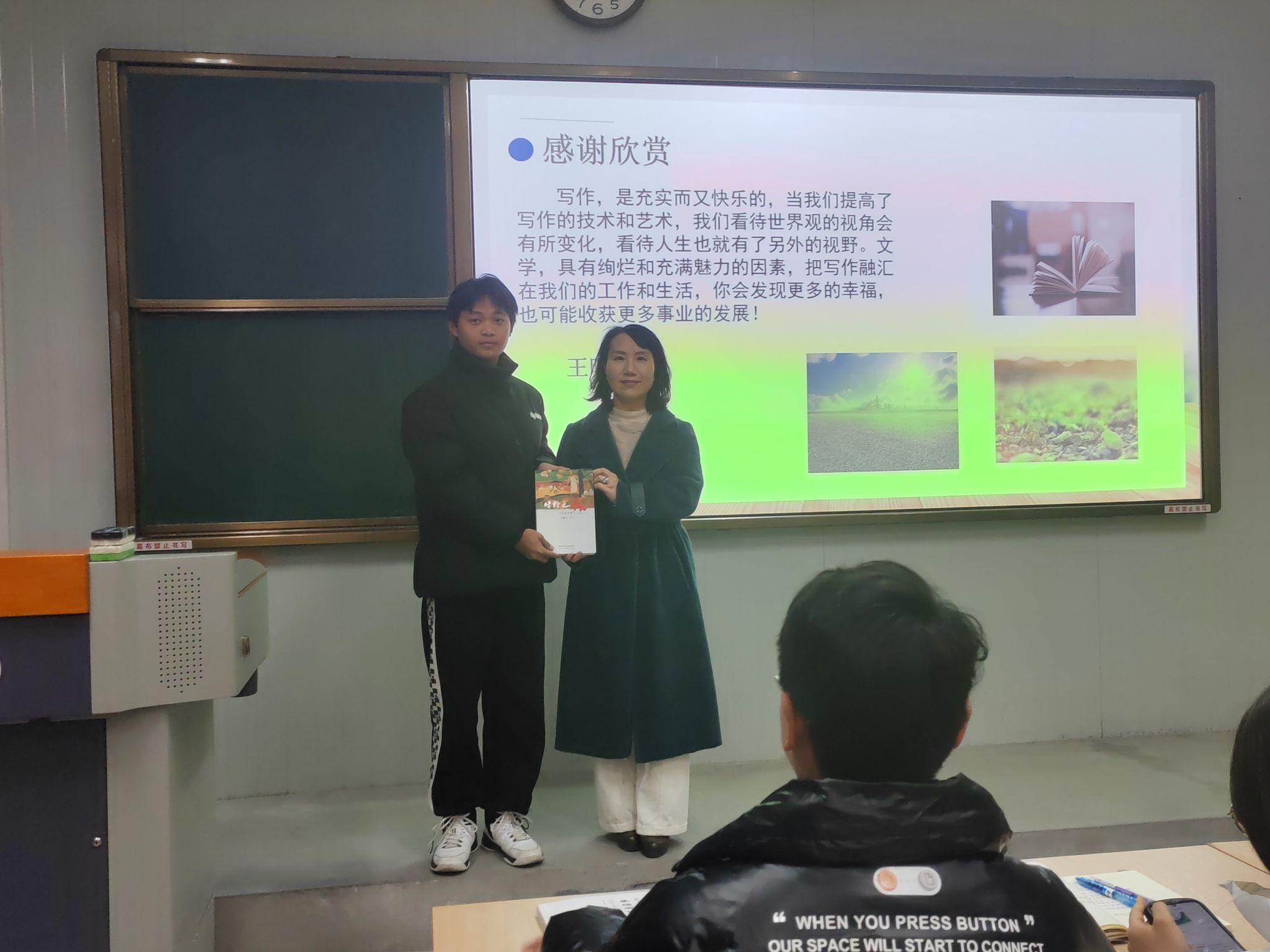 12月25日上午,著名作家王晓云应beats365唯一官方网站邀请,在江南校区1021与《基础写作》课校内教师韩文霞一同为汉语言文学专业2023级1、2班的员工讲授“小说创作”一课。
