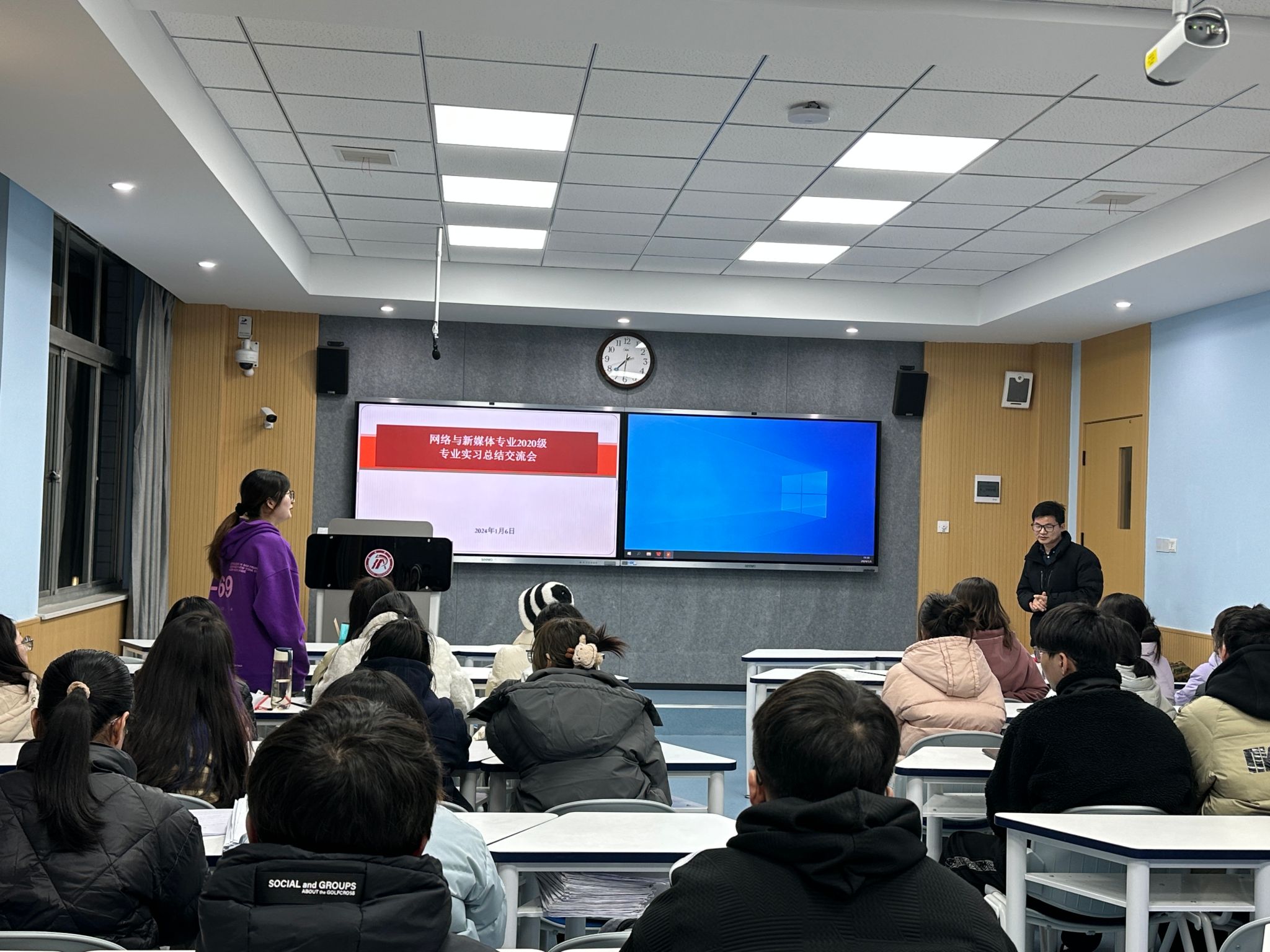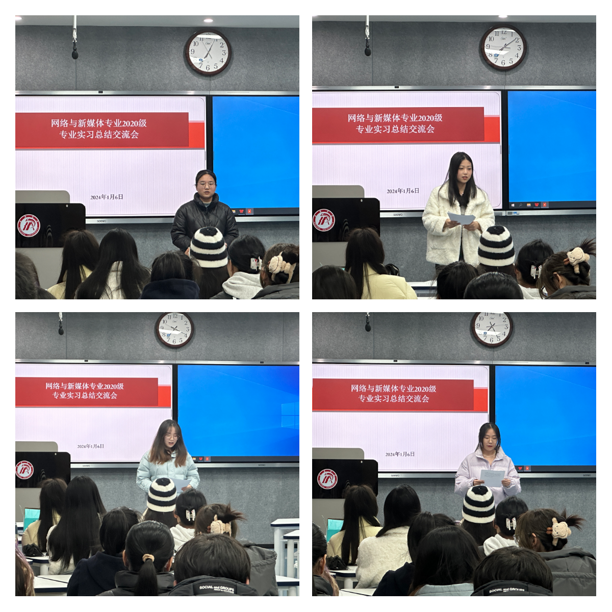 2024年1月6日晚,beats365唯一官方网站网络与新媒体2020级全体员工在1205教室召开专业实习经验分享交流会。会议由实习带队教师张建涛主持,本次会议分为三个环节,首先是优秀员工代表发言,其次为员工自由发言,最后由教师张建涛对此次实习工作进行了总结。