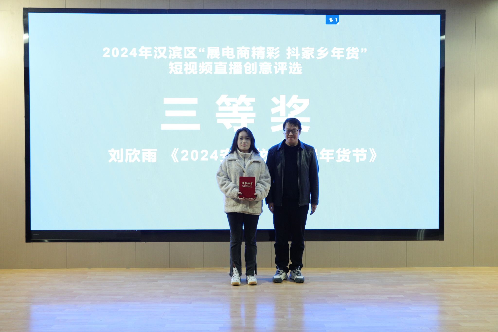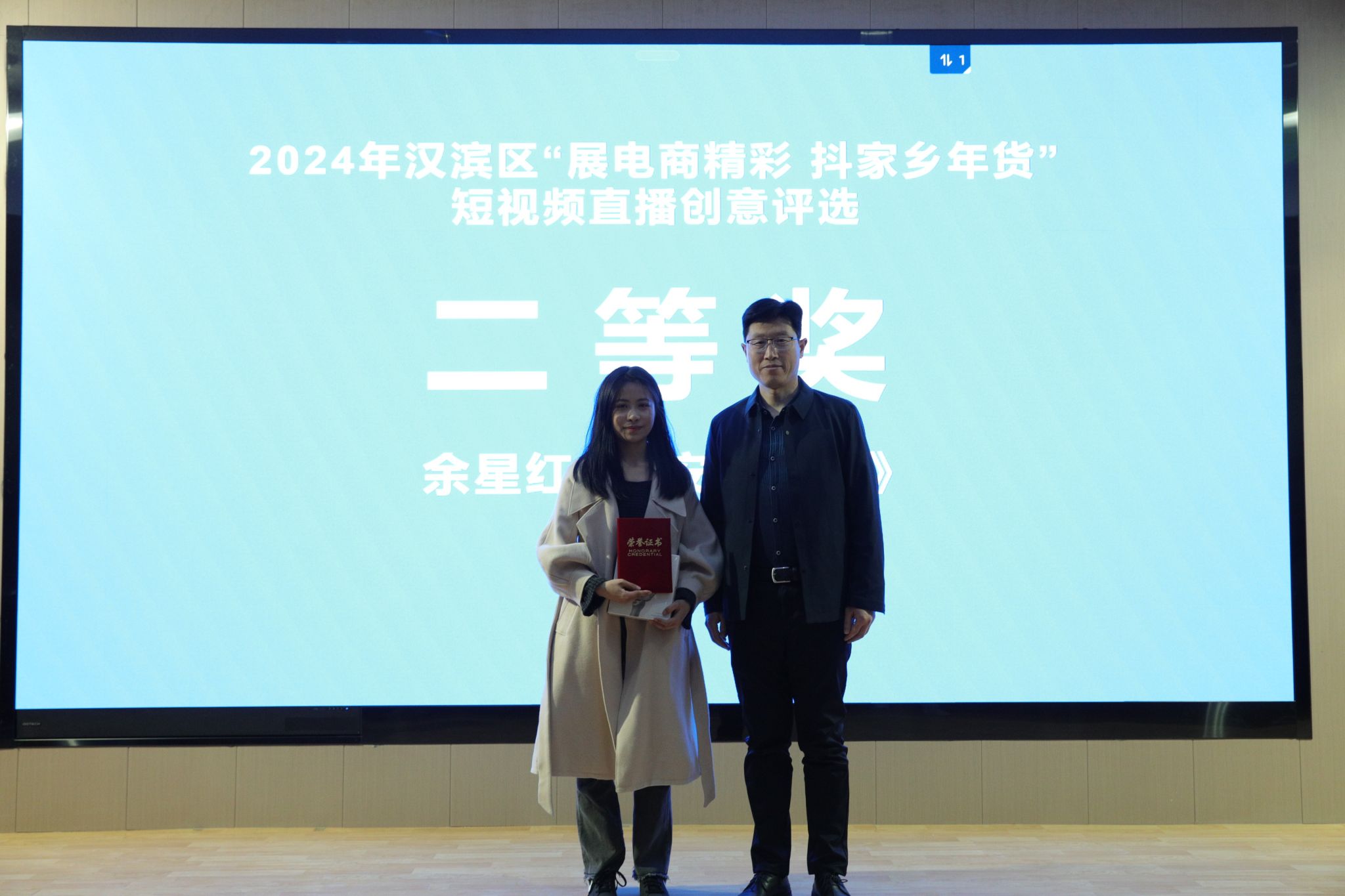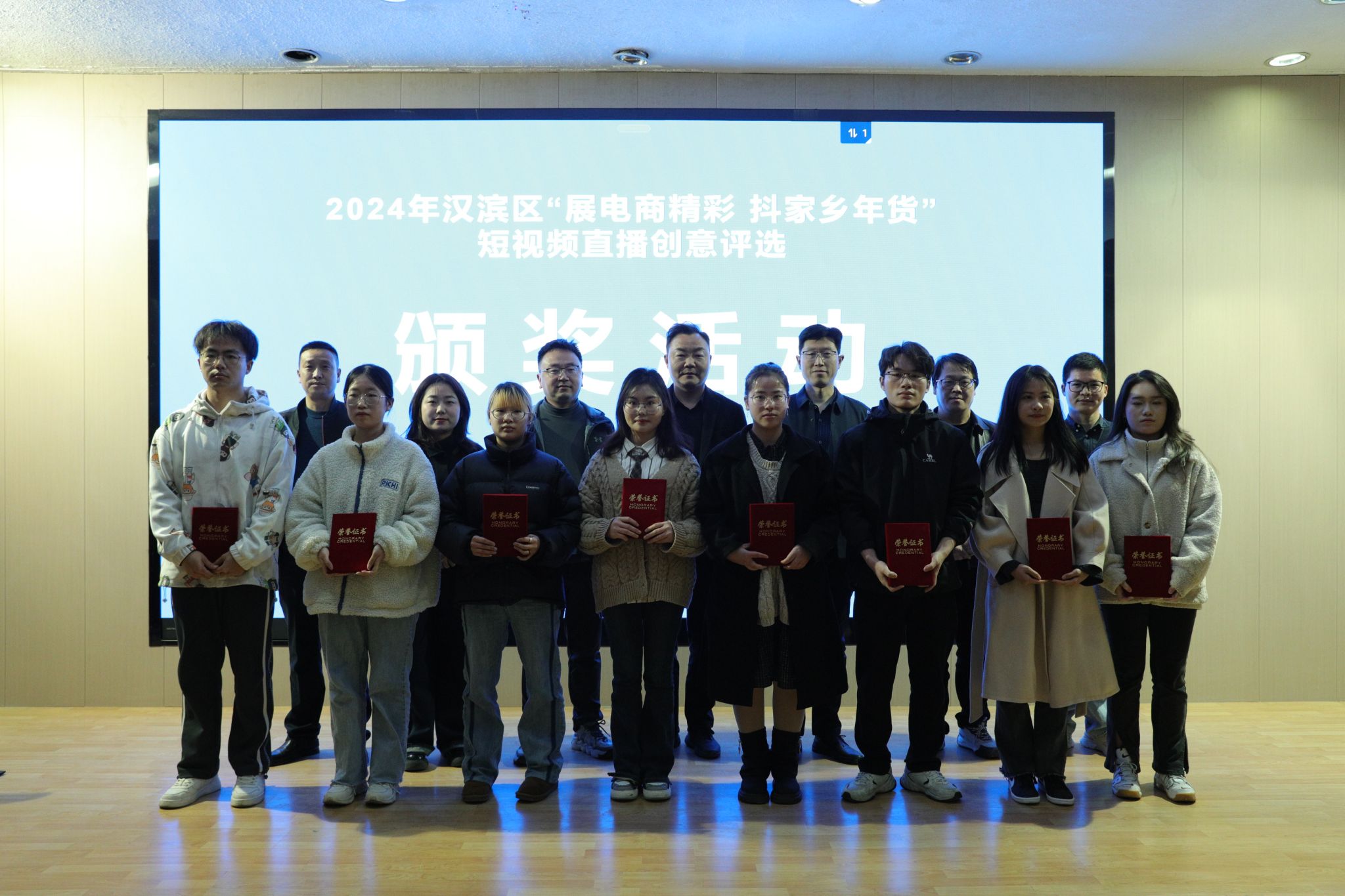 3月15日下午,公司与汉滨区电商中心联合举办的“展电商精彩,抖家乡年货”短视频竞赛在1605报告厅举行了大赛颁奖仪式。汉滨区电子商务服务中心主任李龙、汉滨区电子商务服务中心数字经济股股长张亮、安康市电子商务联合会负责人张铁汉、惟亚(上海)数字科技有限公司电商示范项目负责人李永瑶,公司党总支书记芦伟、副经理朱云,秘书与新媒体系主任张建涛出席了颁奖活动。
