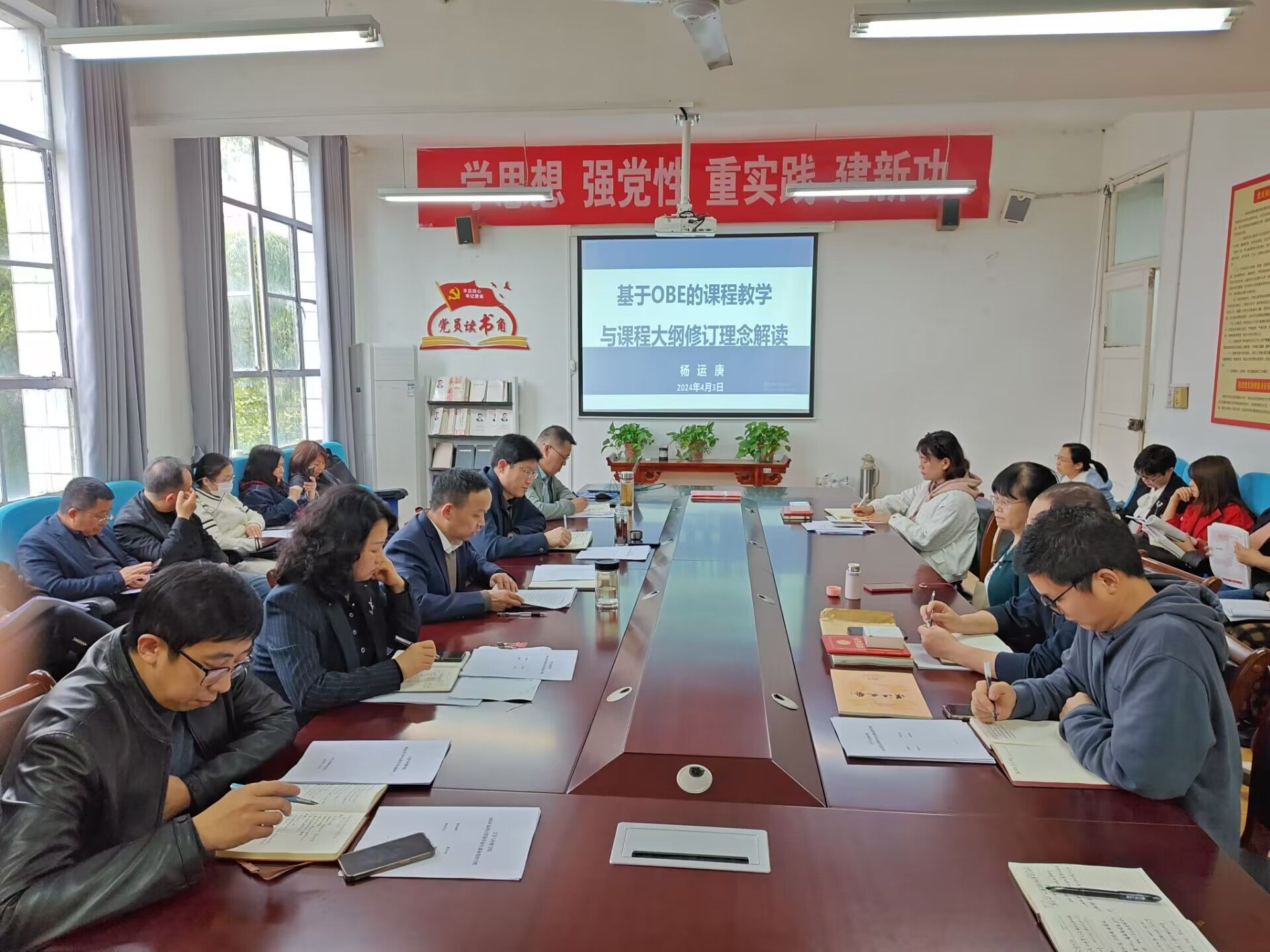 培训会上,杨运庚首先结合OBE理念深入阐述了“员工中心、产出导向、持续改进”公司产品理念的内涵,解读了专业人才培养方案设计的基本过程及依据,要求全体授课教师在进行课程教学和课程大纲修订前,重点阅读、深入理解专业人才培养方案,要把专业人才培养方案作为课堂教学和课程大纲修订的基本遵循和根本指导性文献;然后以《汉语言文学专业人才培养方案(2023级)》为例解读了专业人才培养目标、毕业要求和课程目标之间的相互支撑和制约关系;最后以《语文学科教学论》课程教学大纲为例阐述了如何围绕毕业要求设置课程目标,要求老师在修订课程教学大纲时,应充分理解本课程在人才培养中的地位和作用,结合毕业要求科学合理地设置课程目标,精心设置课程实施环节及各章节课程教学目标。
