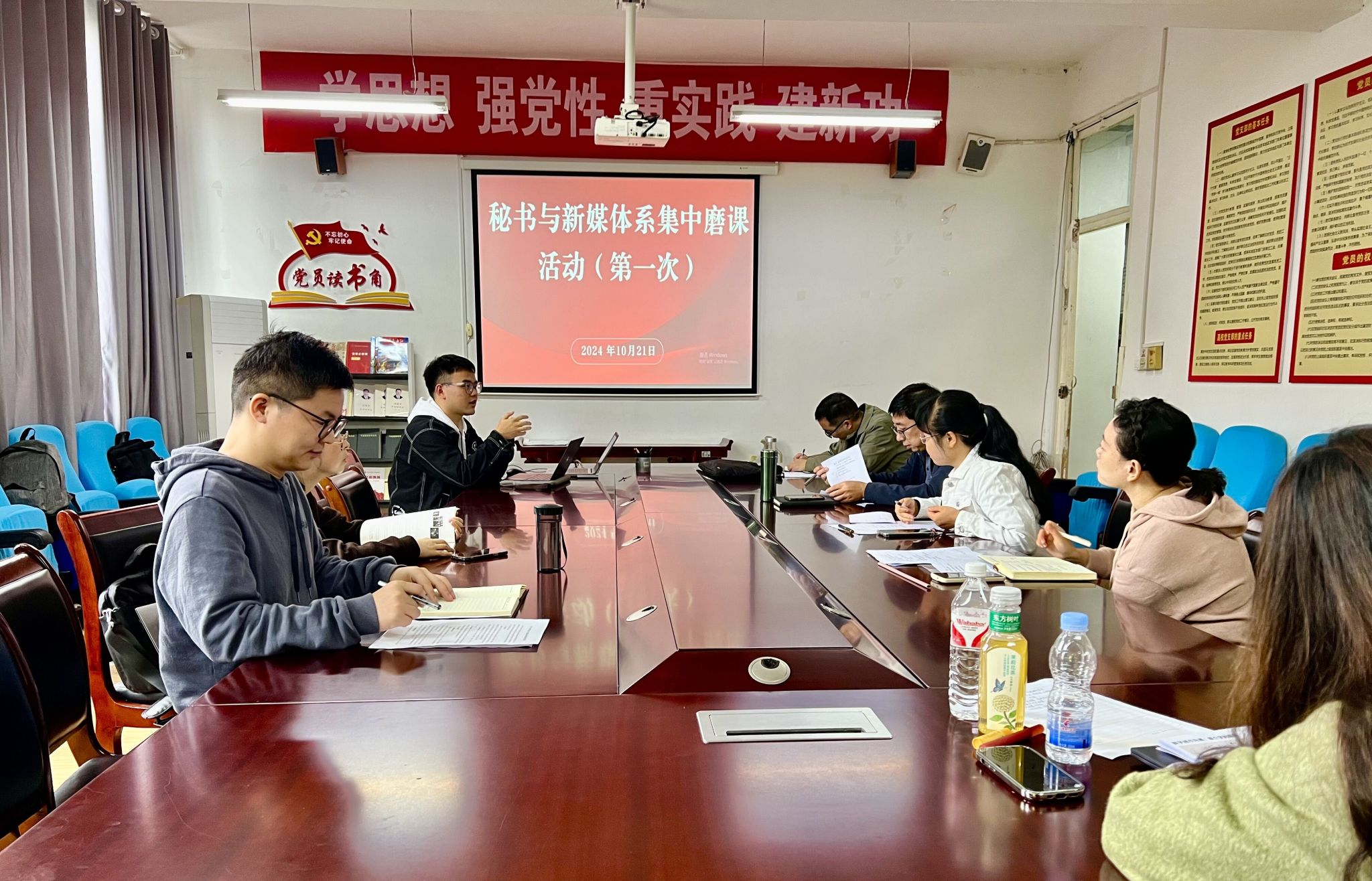 帮助教师提升课堂教学水平按照公司统一安排,秘书与新媒体系10月21-22日在2307会议室组织举办了磨课教研活动。活动邀请孙鸿、崔瑜两位教学督导以及曹刚副经理全程参与指导由系主任张建涛主持,秘书与新媒体系全体教师参与