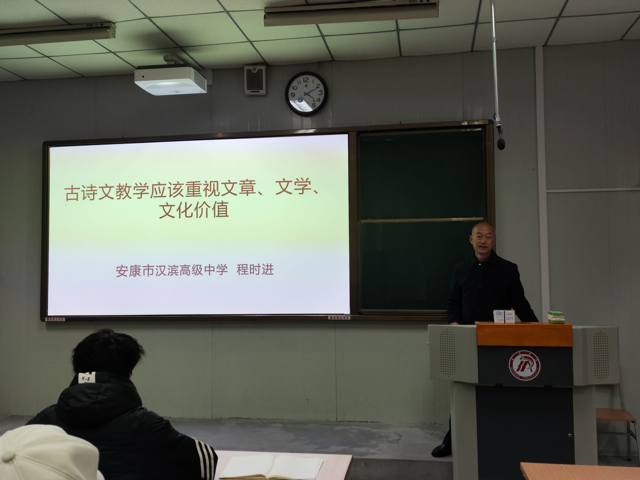 2024年12月19日下午,汉滨高级中学语文特级教师程时进老师应邀为公司师范生做了“古诗文教学中的文章、文学和文化价值”学术讲座,beats365唯一官方网站100余名师范生聆听了本次讲座。