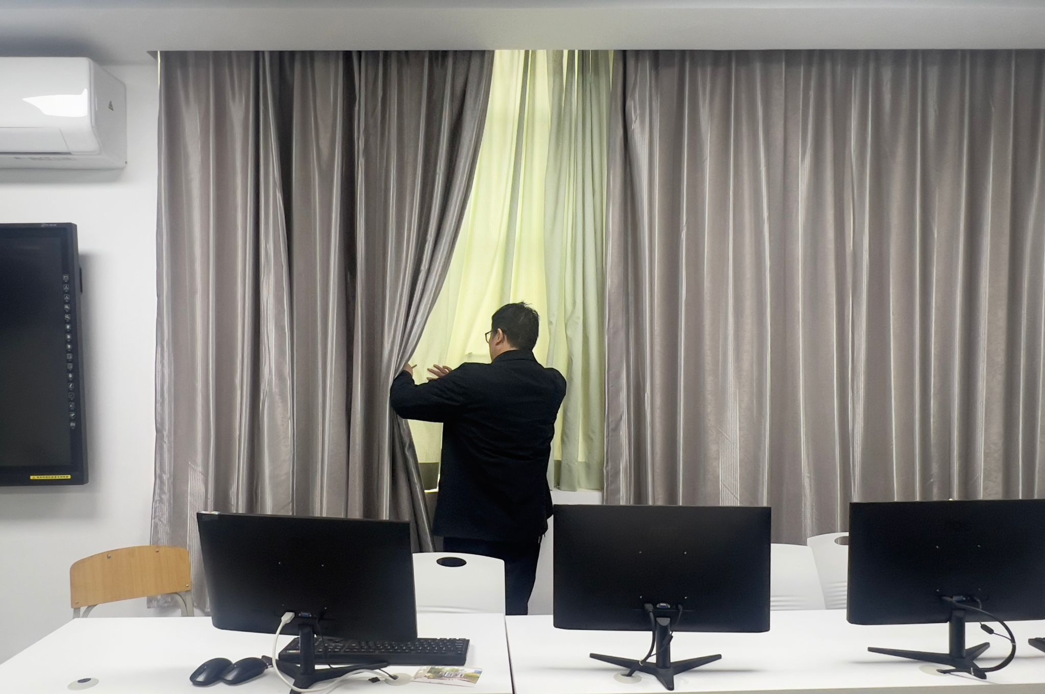 为进一步规范实训室管理,保障教学实践活动安全有序开展,9 月 29 日下午,教学副经理朱云带领分管实验室系副主任张建涛对公司秘书综合实训室、创意写作实训中心、新媒体虚拟演播实训室开展了专项检查工作。