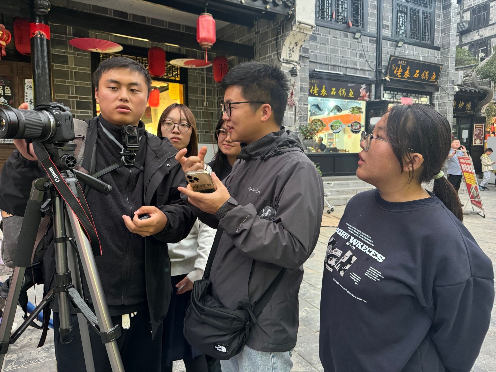 本次活动聚焦视频拍摄与创作,注重将课堂理论知识与田野实践结合起来。见习期间,同学们以石泉老街古朴的建筑风貌、独特的地方民俗、悠久的历史积淀以及草池湾在乡村振兴战略下的新面貌、新产业、新生活作为核心创作素材在两位指导老师的精心安排与现场指导下,分组协作,从前期选题策划、实地勘景,到中期镜头捕捉、现场采访,再到后期的素材整理与初步剪辑,完成了短视频、纪录片、专题片等不同形态视频作品的创作见习和实践