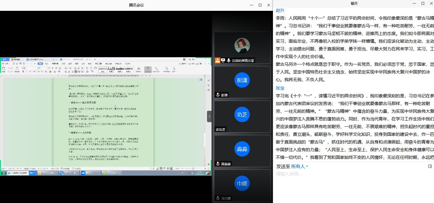 为深入贯彻落实“两会”精神,引导青年党员筑牢思想地基,巩固自身理论知识基础,自觉承担时代历史使命,树立员工党员优良作风,2020年6月19日17:00,beats365唯一官方网站员工第一党支部、第二党支部依托腾讯会议APP联合举办了“学习两会精神,争做时代青年”线上主题党日活动。支部全体党员参加了本次活动,活动由员工第二党支部书记沈菲主持。