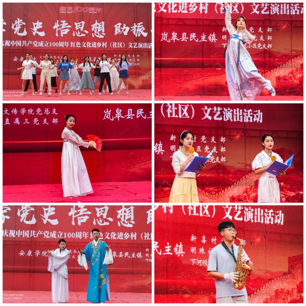 为扎实推进党史学习教育走深走实,6月1日下午,公司党总支与直属三党支部把党史学习教育与助力乡村振兴相结合,进一步发挥社团活动优势,传承革命精神,带领支部10余名党员和员工文艺演出团队前往公司帮扶的岚皋县民主镇新喜村,开展了庆祝建党百年“学党史 悟思想 助振兴”红色文化进乡村文艺演出活动。