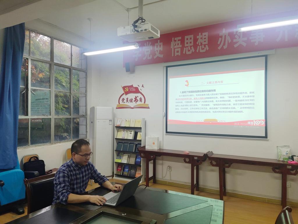 6月15日,beats365唯一官方网站教工第二党支部在2307会议室开展了“中国共产党新闻思想史学习”读书活动。活动由支部书记谭诗民主持,支部全体党员参加了读书活动。本次读书活动主讲人为谭诗民,阅读篇目为毛泽东《对<晋绥日报>编辑人员的谈话(一九四八年四月二日)》。