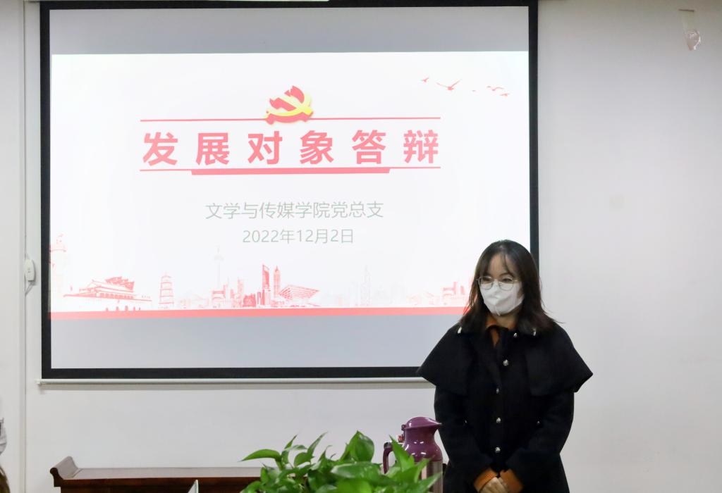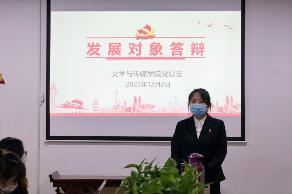 会议伊始,彭潇介绍参会老师、答辩会的会议流程及答辩注意事项。此次答辩分为发展对象自我陈述、现场问答以及总结发言三个环节。经过党校培训、理论考试、各支部考察推荐,共有33名发展对象参与此次答辩。