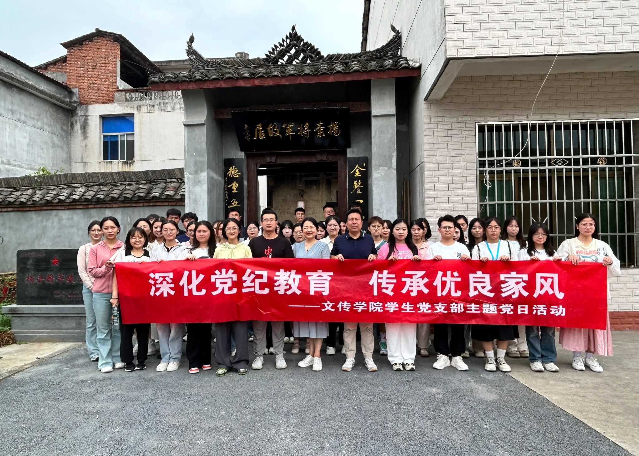 第二个参观学习场所是杨弃将军故居。在杨弃将军后人的讲解引导下,通过一幅幅珍贵的历史照片、一件件充满革命气息的文物,师生们仿佛穿越时空,亲身感受到了那个年代的烽火岁月和英雄豪情。在故居的庄严氛围中,由唐磊同志带领全体党员进行了庄严的宣誓仪式。宣誓声铿锵有力,彰显了党员们对党的忠诚和坚定信念,牢记入党誓词,不忘初心、牢记使命,以杨弃将军等革命先烈为榜样,继承和发扬党的优良传统和作风,努力学习、积极工作,为党和人民的事业贡献自己的力量。