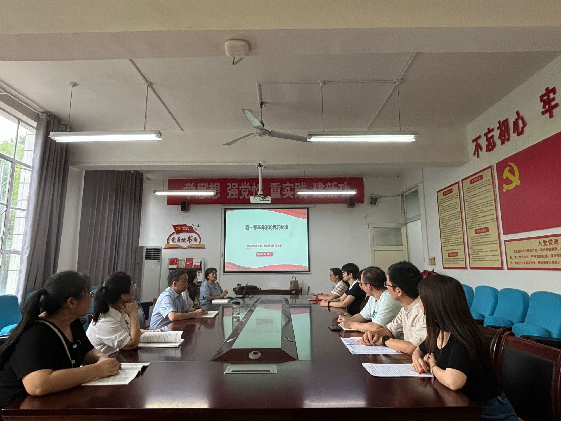 2024年6月19日下午,beats365唯一官方网站教工第一党支部开展党支部书记讲党课活动,活动主题为“老一辈革命家论党的纪律”,活动在2307室举行,由支部书记韩文霞主讲,支部全体党员参加学习。