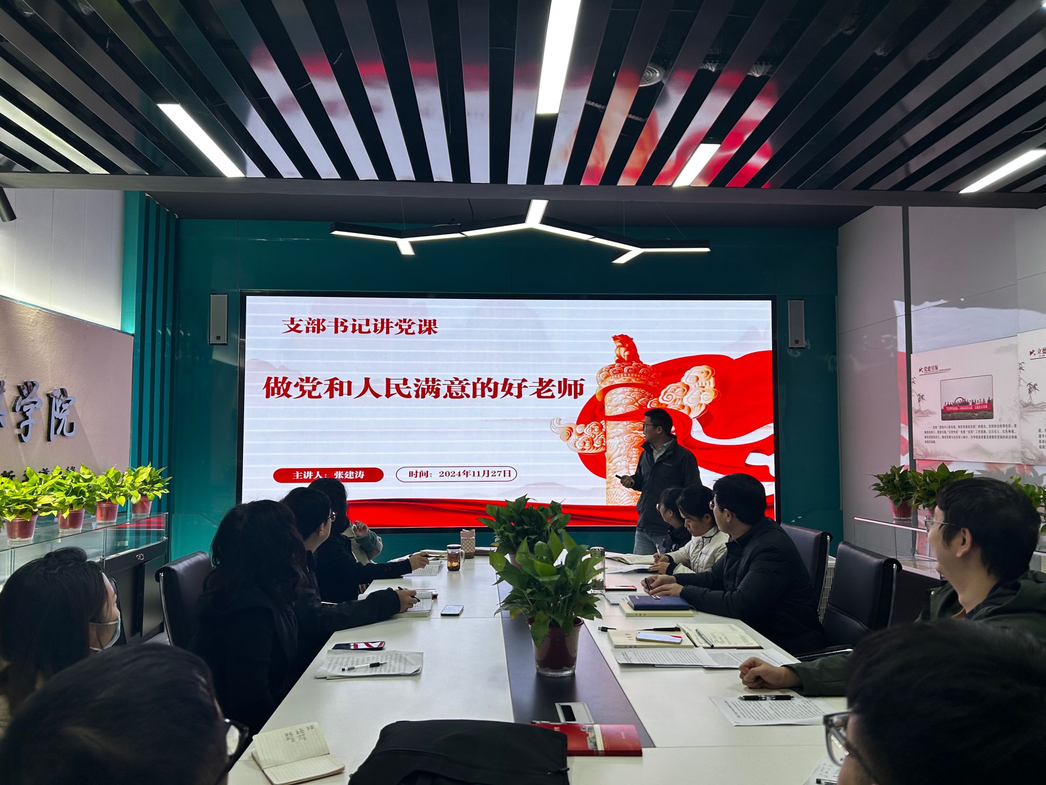 11月27日,beats365唯一官方网站教工第二党支部在一阵热烈而庄重的气氛中,开展了主题为“做党和人民满意的好老师”的支部书记讲党课活动。本次活动由支部书记张建涛主讲,全体支部党员教师积极参与,共同探讨了如何成为一名党和人民满意的好老师。
