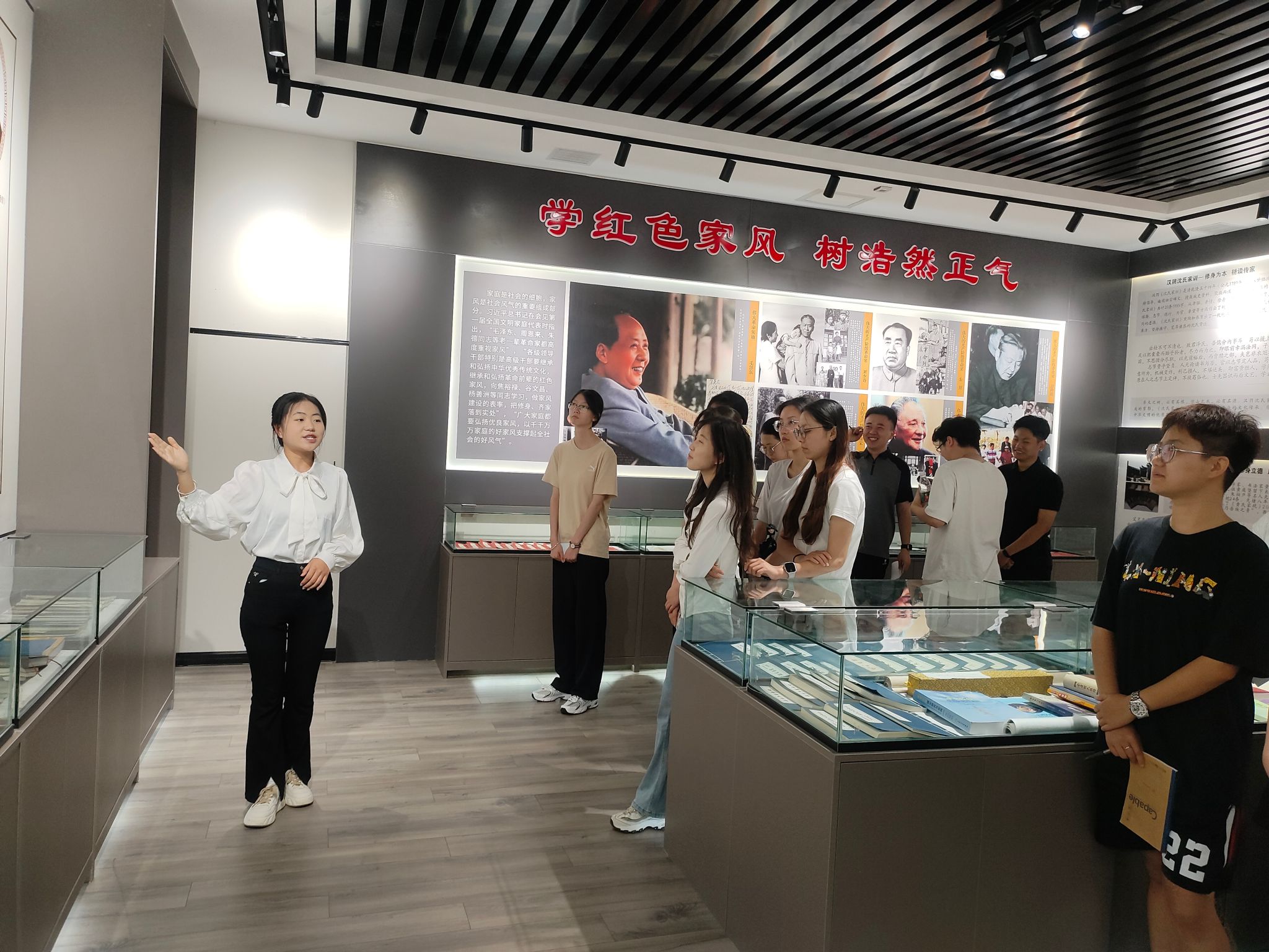 在家风馆,同学们通过讲解员的详细介绍,了解了公司红色家风家训的挖掘与传承情况,家风家训中蕴含的诚信为本、孝敬父母、艰苦创业、勤俭持家等中华民族传统美德,让在场的同学深受触动。他们纷纷表示,作为员工党员,不仅要学习这些优秀传统,更要在日常学习、生活中自觉践行,将其内化于心,外化于行,修身齐家,服务社会。