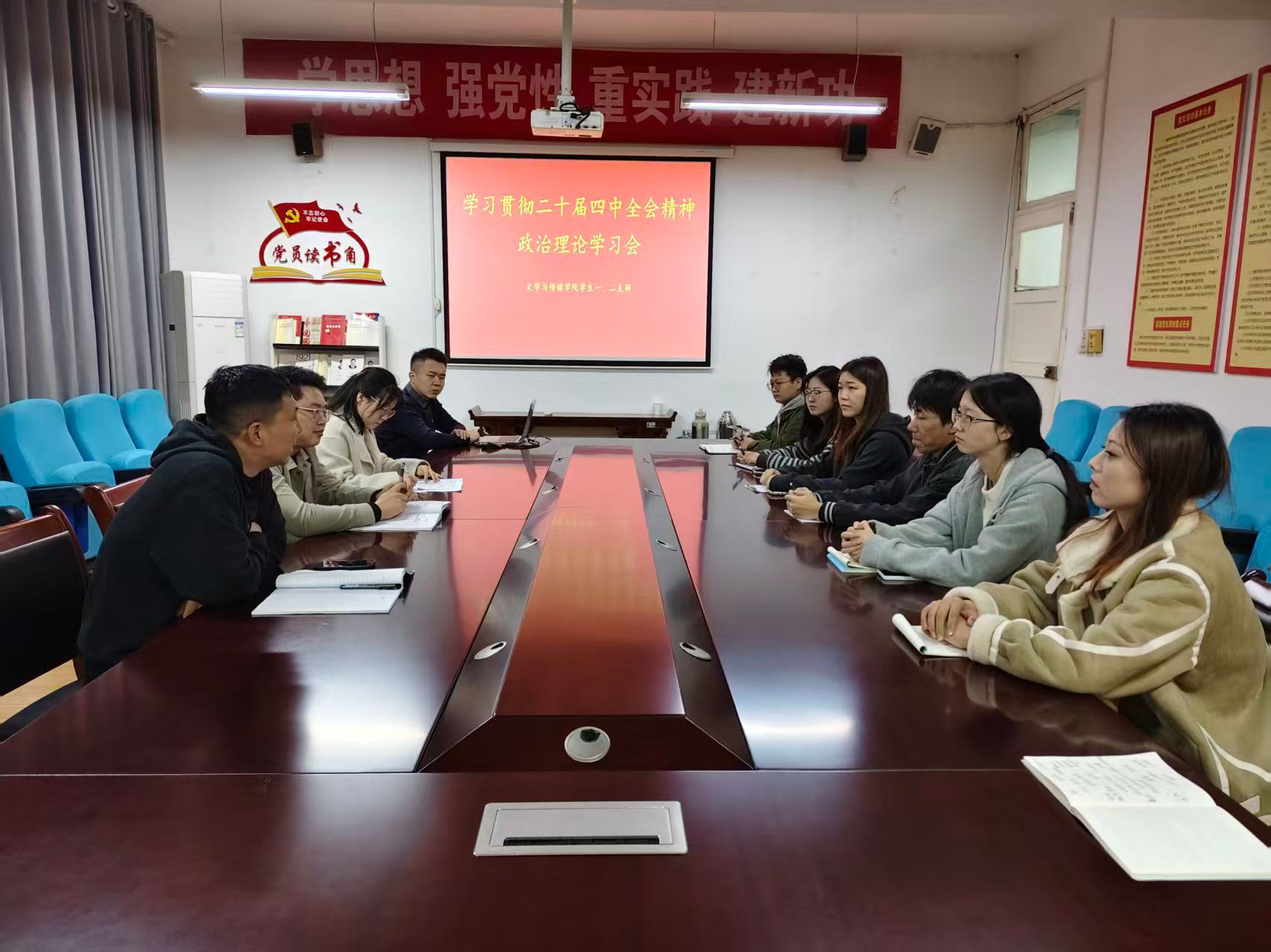 本次主题党日以集体学习、专题解读与交流研讨相结合的形式展开。与会成员首先集中学习了《中国共产党第二十届中央委员会第四次全体会议公报》及相关权威解读材料,重点围绕全会提出的重大理论观点、重要战略部署进行了系统学习。支部委员结合学习材料,对全会精神的核心要义与实践要求进行了领学与梳理。