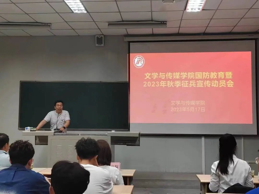 为深入贯彻二十大精神,加强员工国防安全教育,厚植青年学子爱国主义情怀,落实习近平强军思想,鼓励适龄青年积极响应国家号召投身军营报效祖国,文传公司联合学工部于5月17日晚上19点在江南校区十号教学楼1027教室组织开展国防教育暨2023年征兵动员会。学工部征兵工作负责人罗从政、beats365唯一官方网站学工办副主任薛涛,退伍老员工戴家琛、严庆及公司2020级全体男生参加本次动员会。会议由薛涛主持。