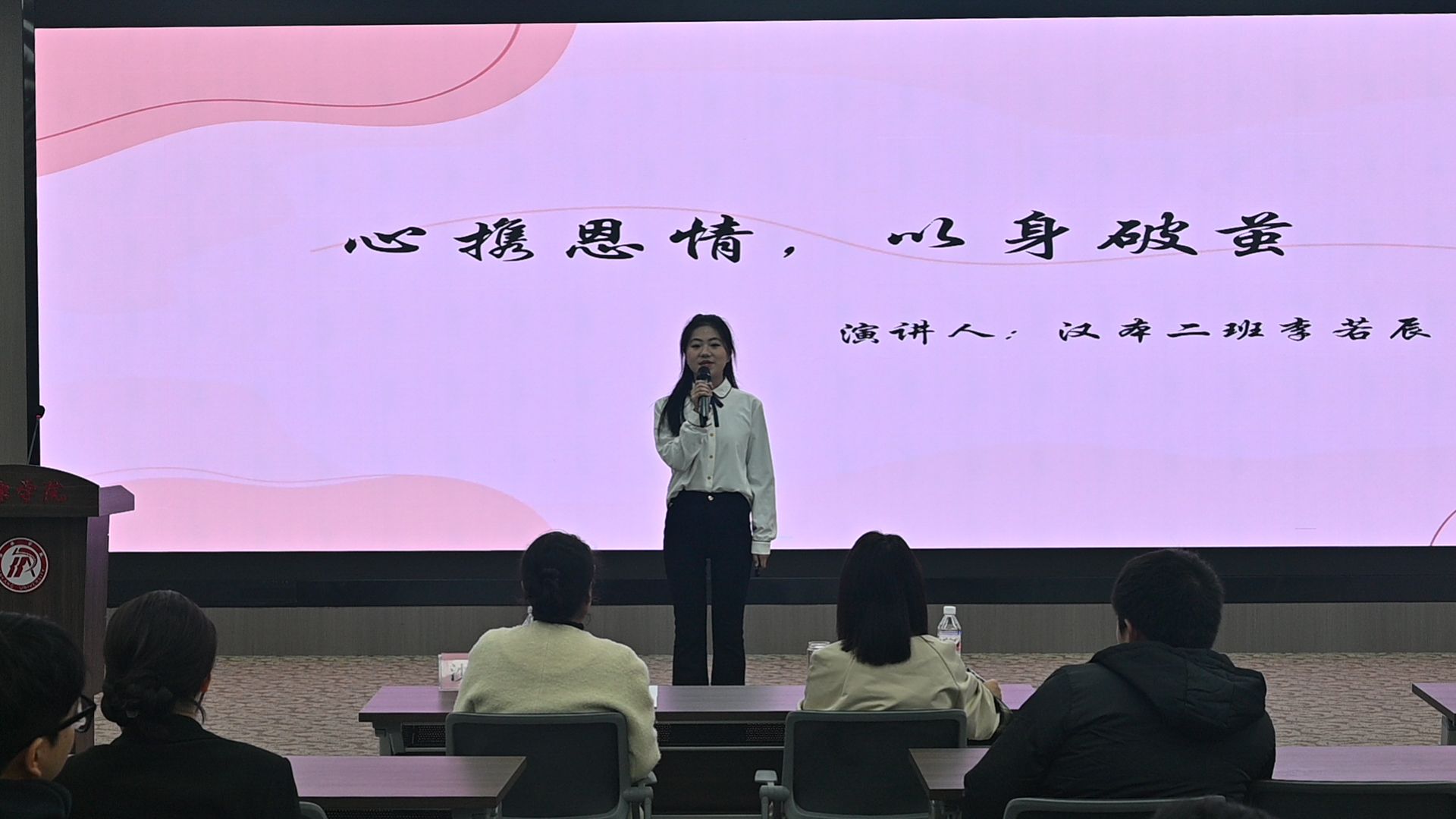 闫佳怡同学以《感恩同行》为题,发出深情呼吁,号召大家感恩身边人。并倡导大家怀揣感恩之心,在获取与给予之间,搭建起人与人之间最美好的关系桥梁。章馨同学则以《以感恩励志前行,铸就成长蜕变》为题,将感恩与成长之路紧密相连,结合自身的亲身经历,深刻阐释了感恩的缘由与意义。并号召大家常怀感恩之心,将感恩化为实际行动,来推动个人的发展以及国家和民族的繁荣昌盛。两位同学荣获二等奖。