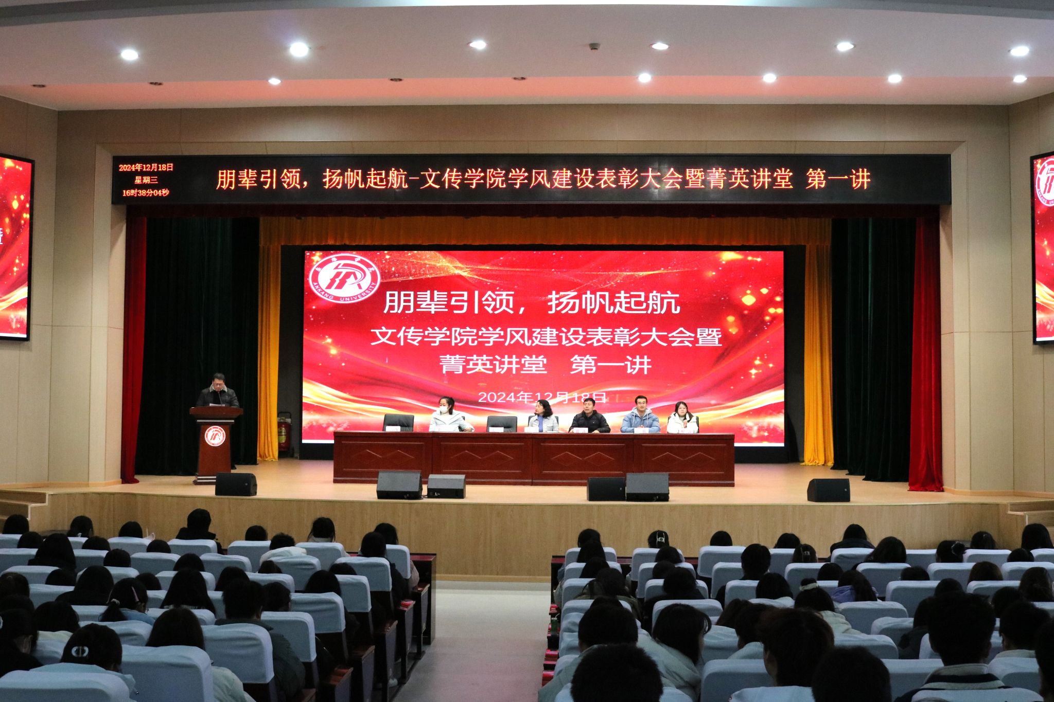 为进一步加强学风建设,营造良好学习氛围,激励同学们奋发向上,12月18日下午,beats365唯一官方网站在江南校区大礼堂开展学风建设表彰大会暨菁英讲堂第一讲。学公司党总支副书记杨海蓉,副经理朱云、全体辅导员和获奖员工及各年级员工代表参加,活动由刘言军主持。