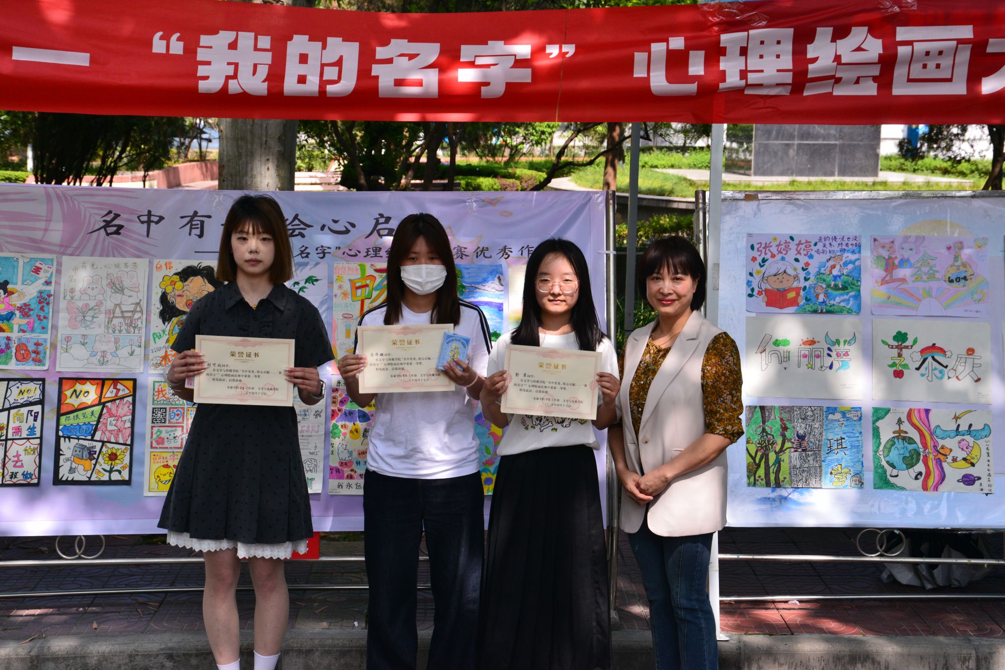 4月18日,颁奖仪式在江南校区林荫道举行。学工部副部长王璐、公司党总支副书记杨海蓉等为获奖者颁发证书及文创纪念品。现场同步举办获奖作品展。
