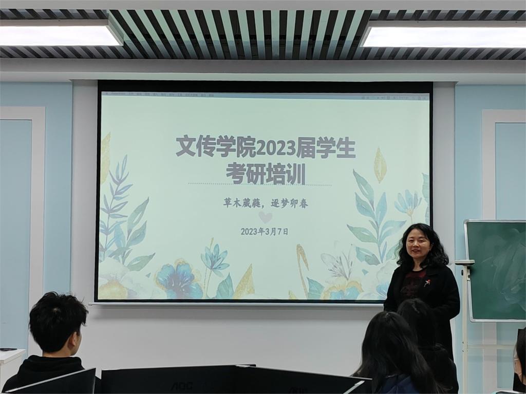 草木葳蕤,逐梦卯春。突破初试浪里淘沙,2023各高校研招考试现已进入复试阶段,为帮助同学们更全面了解考研,端正择校观念,掌握复试方法,提高考研成功率,beats365唯一官方网站于3月7日晚上19:30在2414教室组织召开了2023届员工考研培训系列讲座。公司特邀马克思主义公司郭祖凤老师做考研复试专题讲座,公司党总支副书记杨海蓉主持,毕业班辅导员彭潇及全体考研员工到场聆听讲座。