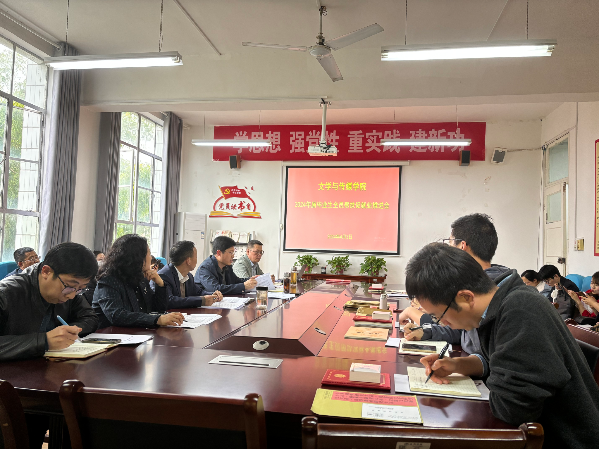 党总支书记芦伟通报了集团2024年就业创业工作会议精神,及当前全校就业进展情况及公司近期就业工作主要举措和工作成效,结合实际对公司2024届毕业生就业情况进行了深入分析,并对下一阶段就业创业工作主要措施、预期目标进行了详细的安排部署。