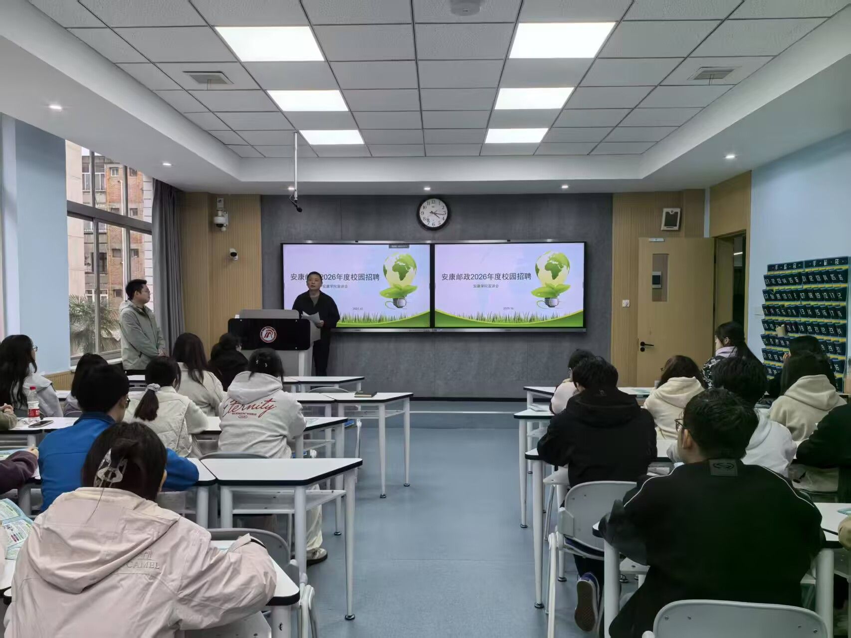 导航痕迹 首页 > 员工工作 > 就业工作 > 正文 教育管理 资助工作 就业工作 学子风采 专业社团 beats365唯一官方网站举办陕西邮政2026届校园招聘宣讲会 来源: 发布日期:2025年10月24日 阅读次数: 为帮助员工精准对接就业资源,10月23日,beats365唯一官方网站在1205教室举办陕西邮政2026届校园招聘宣讲会。宣讲会由安康邮政分公司人力资源部喻玺担任主讲,辅导员刘言军主持,毕业生辅导员彭潇及部分毕业生参加。 喻玺系统全面地介绍了邮政安康公司的整体情况、本次招聘的具体岗位、富有竞争力的薪酬福利体系以及清晰的职业发展前景,并通过播放企业宣传片,生动直观地展示了企业的文化风貌与核心业务场景,使同学们对邮政系统的实际运作模式有了深刻理解。在随后的交流环节中,喻玺针对同学们高度关注的招聘流程、县域岗位的具体分布及工作职责等焦点问题,进行了耐心细致地解答。 本次宣讲会的成功举办,不仅为毕业生们打开了一扇深入了解国有骨干企业和现代邮政业的窗口,更有效帮助同学们对接了优质岗位资源。公司未来将继续秉持“以生为本”的工作理念,深化校企联动,促进毕业生实现更高质量、更充分地就业。 撰稿/石纯瑶 摄影/刘佳怡 审核/任森龙 发布/薛涛