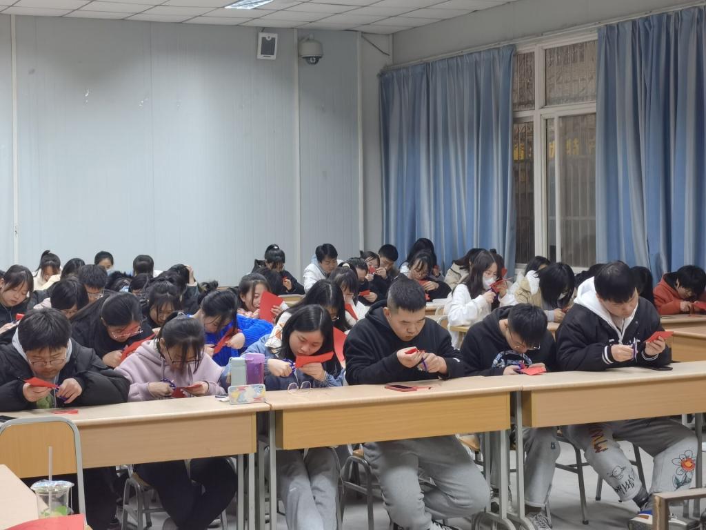 “我上课发剪纸材料的时候,发现准备的纸张到互动环节根本就不够,同学们积极性很高。”汉语言专业的刘瑞丽说:“在自己动手剪的过程中才发现,剪纸活动是一项特别需要耐心的活动,急不得也急不来,寒假在家里的时候,我自己也独立尝试的剪了一只小老虎,但是剪的并不是很成功。我觉得剪纸这门艺术要代代相传的话,就更需要我们这些青年参与进来,了解更多的剪纸知识,实际动手拿起剪刀剪一剪。”“听了剪纸讲座,我的感触很多,原来所有的人物也可以通过剪纸的形式来展现,这种形式并不粗糙,反而栩栩如生。其中,我最喜欢彩色剪纸,它给我的第一感觉就是神秘,剪刀下的一切事物都变得形象生动。”2021级小学教育专业的李小芸本身专业就会学到手工制作,因此对该课程格外有兴趣。“虽不能每场讲座都参与,但在我感受的过程中,主讲人的严谨耐心,非常值得我们学习,以及他对传统非遗文化的一种执着与追求,这种精神也值得我们的年轻人受用。”2020级小学教育专业的文杨如是说。讲座中,男生们也都不甘示弱地操起剪刀,跟随者梁少华的讲解细心地完成每个步骤。来自2018级数学与应用数学专业的吴佳涛称:“本身对于剪纸和秦腔,我都不太感兴趣,因为从未接触过,但是听了讲座收获很大,不仅知道了剪纸的历史,分类,风格,还在近距离接触中对这门艺术有了一个较为深刻的感觉,剪纸艺术的精美会永远令我铭记!”