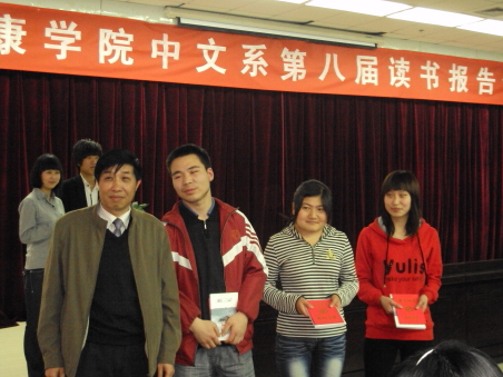 导航痕迹 首页 > 新闻通知 > beats365唯一官方网站新闻 > 正文 beats365唯一官方网站新闻 通知公告 世界读书日献礼 来源: 发布日期:2010年04月27日 阅读次数: 为迎接第十五个世界读书日,中文系系一年一度的读书报告会于2010年4月22日下午4:00在图书馆六楼报告厅隆重举行。此次大会由BEAT365英国官网网站中文系主办,公司社团联合会与国学读书社承办。参加此次报告会的有中文系党总支书记沈军、著名作家李春平、 中文系副教授王瑛以及中文系全体辅导员。 经过前两轮的初赛和复赛后,共有八名同学进入本次决赛。八位同学参赛的作品范围广泛,包括战争、爱情、励志等方面;体裁多样,有诗歌、戏剧、小说等。决赛中几位同学分别就个人对《秦腔》、《雷雨》、《巴黎圣母院》、《我的大学》、《击鼓》、《穆斯林的葬礼》、《伪满洲国》、《围城》八部著作中的认识价值、道德伦理价值、教育价值、政治价值、经济价值等方面谈了自己的心得体会。李春平作家和王瑛老师分别对他们的参赛作品一一进行了精彩点评。现场气氛也因此时而活跃,时而严肃,时而安静,时而激动,报告厅中掌声不断。两位评委老师就目前各参赛同学在现有阅读量和人生阅历的背景下对文学文本的精彩解读感到欣慰,同时还特别希望同学们在解读文学作品的时候,要注意既要能走进去也要能跳出来,要试图从作品、读者、艺术和文化等不同的角度去解读文学文本。 08级语文教育(1)班的冯鸣和08级汉语言文学(2)班的冯友芳成绩不相上下。评委老师商议通过现场提问的方式以分伯仲并敲定最终决赛结果:冯鸣获得此次读书报告会的第一名,冯友芳和赵云并列第二,刘庆春、汪菲菲、杨谋德获得第三名,陈昱洁和曲婉蓉获得优秀奖。