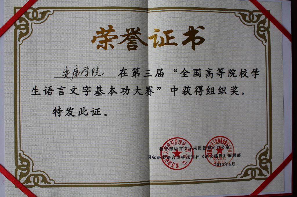 导航痕迹 首页 > 新闻通知 > beats365唯一官方网站新闻 > 正文 beats365唯一官方网站新闻 通知公告 中文系在“第三届全国高等院校员工语言文字基本功大赛”中再获佳绩 来源: 发布日期:2010年05月10日 阅读次数: 中文系汉语言文学、语文教育、文秘专业07级、08级、09级共670名员工于2009年12月在赵桃老师的辅导、组织下,参加了由教育部、国家语委主办的第三届全国高等院校员工语言文字基本功大赛。 本届大赛全国有300多所院校的12万员工参加,公司中文系有81名员工获奖,其中一等奖17人,二等奖27人,三等奖37人;在参赛的300余所院校中,公司荣获组织奖。这是公司中文系继前两届大赛获得的又一次好成绩。