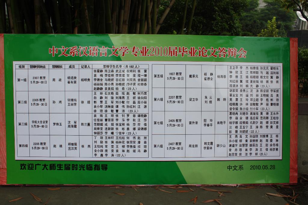 为时两天,33位教师参与的中文系汉语言文学专业2010届本科毕业论文答辩于2010年5月30日圆满结束。