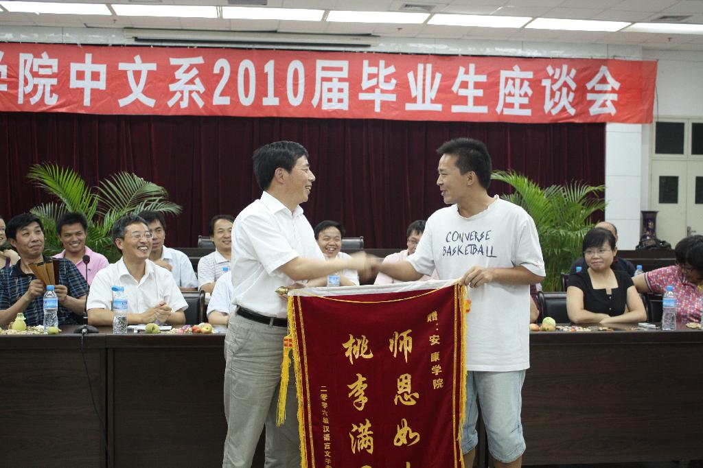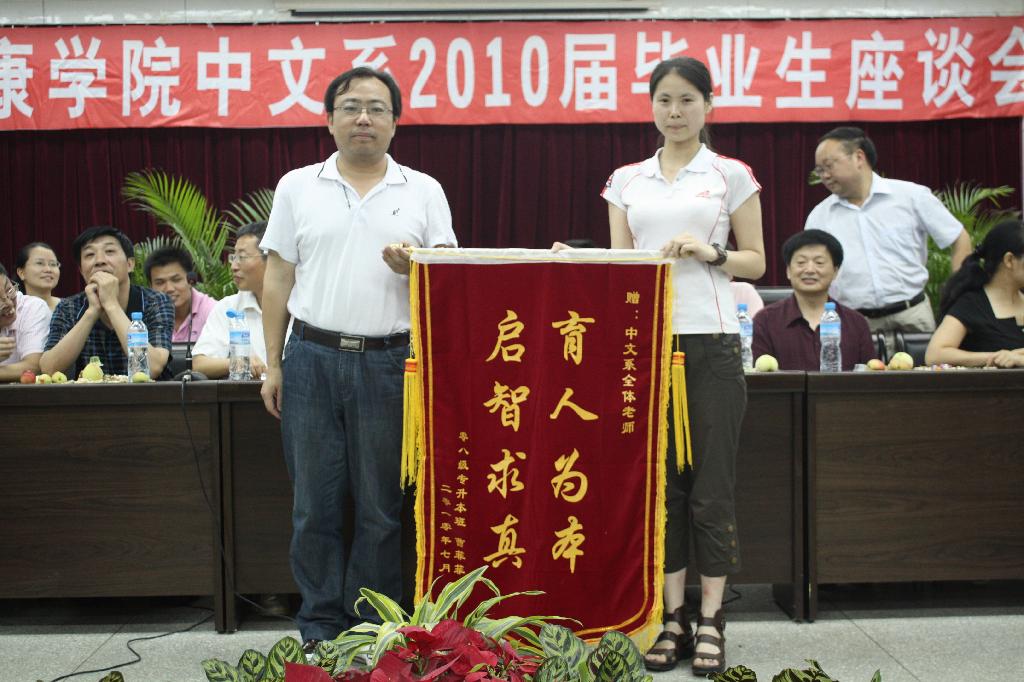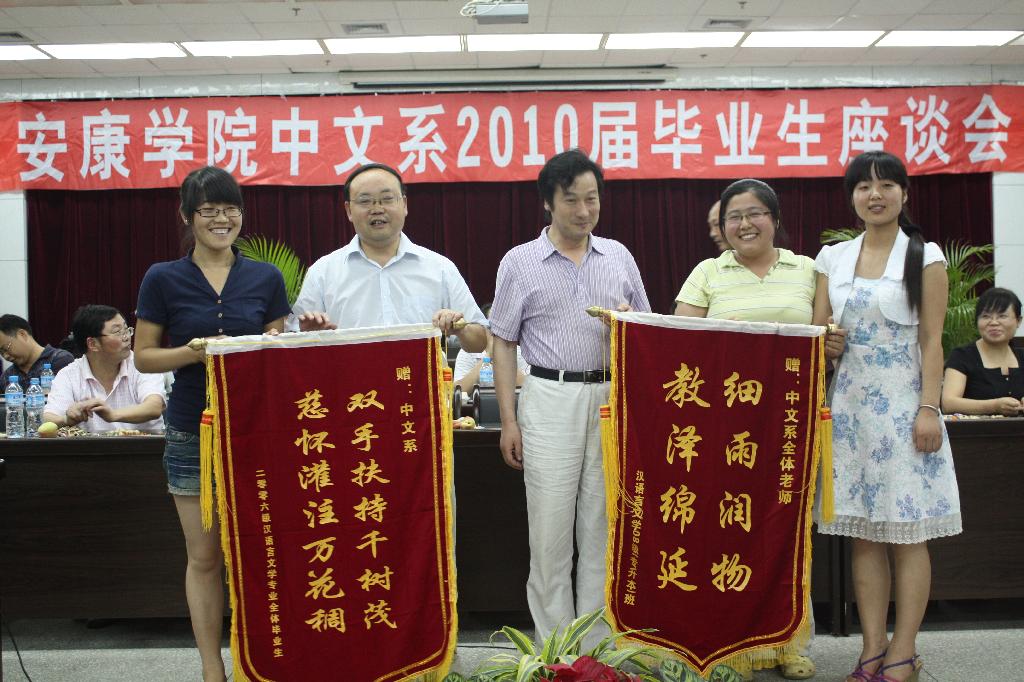 2010年6月30日,中文系在公司图书馆六楼报告厅召开2010届毕业生座谈会,公司党委副书记胡鸿晓教授、中文系主任戴承元教授、中文系党总支书记沈军老师等党政领导、孙鸿教授、周政教授等二十余名教师出席了座谈会,中文系2010届毕业生代表和大二、大三员工代表参加了座谈会。座谈会由中文系党总支书记沈军老师主持。