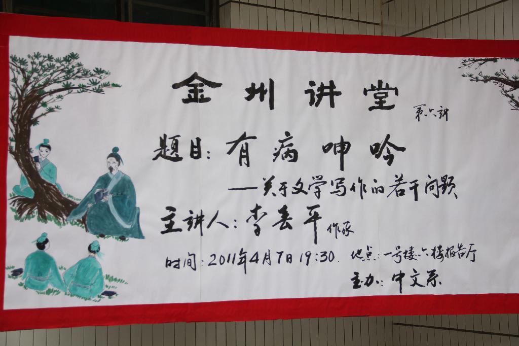 导航痕迹 首页 > 新闻通知 > beats365唯一官方网站新闻 > 正文 beats365唯一官方网站新闻 通知公告 当代著名作家李春平应邀做金州讲堂第六讲 来源:zwx 发布日期:2011年04月08日 阅读次数: 2011年4月7日晚,中文系副教授、当代著名作家李春平应邀做客金州讲堂,在一号教学楼六楼报告厅为广大师生做了题目为《文学:有病呻吟》的专题讲座。 李春平主要针对当今老员工写作中带有普遍性的五个问题进行了阐述,并提出解决问题的技术性措施。首先,文本意识不强,缺乏文本意识,没有建立完整的文章结构的整体观念。其次,主题直白,含蓄不够,缺少内涵。其三,语言平淡,苍白无力,干涩呆板,没有生机。其四,写作受阻问题,他提出,即便受阻,也要坚持写下去,写完后再进行修补。最后,李春平就如何阅读文学经典的问题提出了自己的见解。他指出,现在大多数员工的阅读量不够,写出来的文章有些肤浅。创作需要大量的知识积累,如果不注重知识更新,迟早会江郎才尽。 李春平深邃的思想,幽默的语言赢得了阵阵掌声,同学们也纷纷提问,这不仅仅是一次讲座,也是同学与老师之间良性互动,问题的探讨,思想的交流,平等的对话,更有助于激发同学的创作兴趣,增长创作知识。