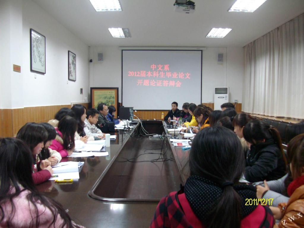 导航痕迹 首页 > 新闻通知 > beats365唯一官方网站新闻 > 正文 beats365唯一官方网站新闻 通知公告 中文系举行2012届本科生毕业论文开题报告论证答辩会 来源: 发布日期:2011年12月20日 阅读次数: 2012届本科生毕业论文写作是本学期的一项重要工作,为保证毕业论文写作质量,按照工作进程安排,2011年12月12日至17日,中文系以教研室为单位,对2012届本科生毕业论文开题报告进行了全面论证,并组织了现场答辩。 各教研室十分重视这次论证答辩,划分了论证小组,召开预备会,提出论证具体要求。各小组采取多种形式,深入了解员工论文开题准备和完成情况,对存在的问题进行会诊,提出修改意见和建议。 本次开题论证答辩是中文系毕业论文写作环节的一次尝试,结果表明员工非常欢迎这种方式,论文指导效果明显,集中解决了员工写作过程中的一些困惑和难题。尤其是对一些员工在选题、写作角度、难易度以及学术论文的规范性上存在的问题进行了及时纠正,为初稿写作奠定了基础。