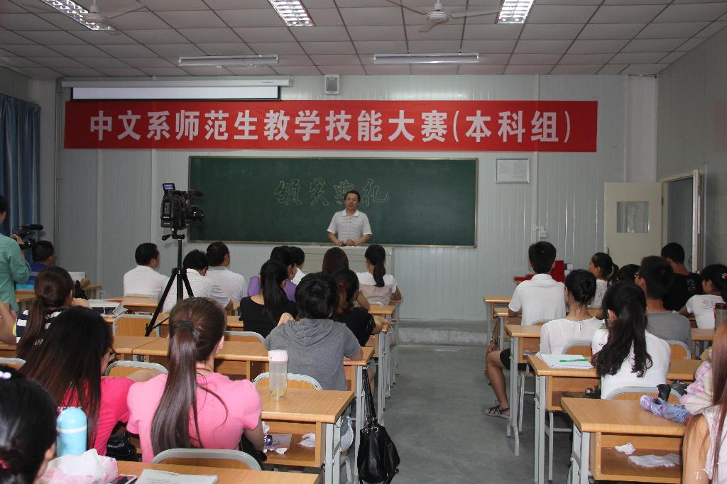 6月14日,中文系第二届师范生教学技能大赛决赛在十号楼1016、1018教室成功举行。来自2009级汉语言文学和2010级语文教育专业的53名同学参加角逐,最终评选出一等奖5名,二等奖10名,三等奖15名,优秀奖33名,同时评出“最佳板书奖”、“最佳才艺奖”等单项奖4名。