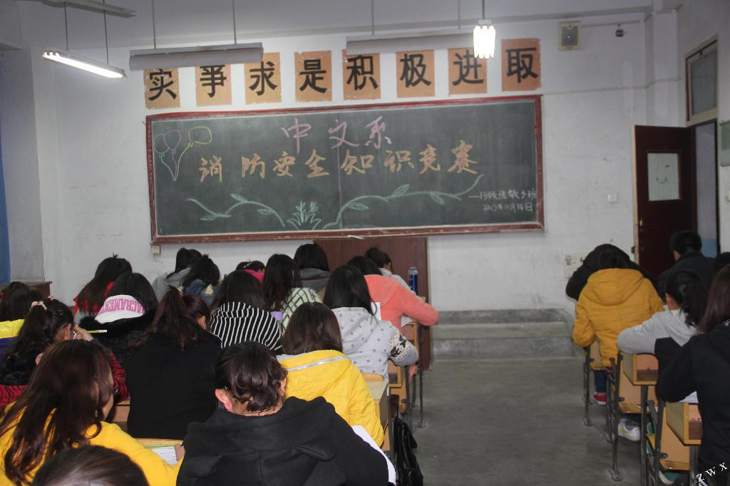 导航痕迹 首页 > 新闻通知 > beats365唯一官方网站新闻 > 正文 beats365唯一官方网站新闻 通知公告 中文系举行消防安全知识竞赛 来源:zwx 发布日期:2013年11月15日 阅读次数: 2013年11月14日晚,中文系在一号教学楼举行消防安全知识竞赛,学工办主任郝礼军、辅导员邹棠华以及13级新生共计420人参加了本次竞赛活动。 通过本次消防安全知识竞赛,目的是加强对员工消防知识的宣传教育工作,增强员工的消防安全意识,防火救灾能力和逃生自救能力等,有效防范和减少火灾事故的发生,达到了在员工中宣传消防安全教育,全面普及消防安全知识和安全常识的目的,对进一步做好消防安全工作具有重要意义。