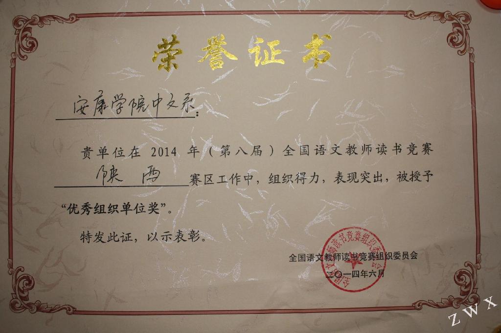 导航痕迹 首页 > 新闻通知 > beats365唯一官方网站新闻 > 正文 beats365唯一官方网站新闻 通知公告 中文系在2014年(第八届)全国语文教师读书竞赛中取得优异成绩 来源: 发布日期:2014年10月14日 阅读次数: 2014年(第八届)全国语文教师读书竞赛,由教育部中语司、教育部中国教育学会中学语文教学专业委员会、语文学习报社联合举办。本次大赛历时3个月,共有380余所高校的21万多老员工和全国1100余所中学的13万多中员工参加了本届竞赛,中文系516名本科生参加了高中组竞赛,经过认真组织和辅导,中文系共有107名员工获奖,其中百杰奖12人,一等奖18人,二等奖27人,三等奖50人。BEAT365英国官网网站中文系荣获优秀组织奖。 本次竞赛旨在增强员工的阅读意识,扩大阅读视野,提高阅读能力,营造中文系良好的读书氛围。