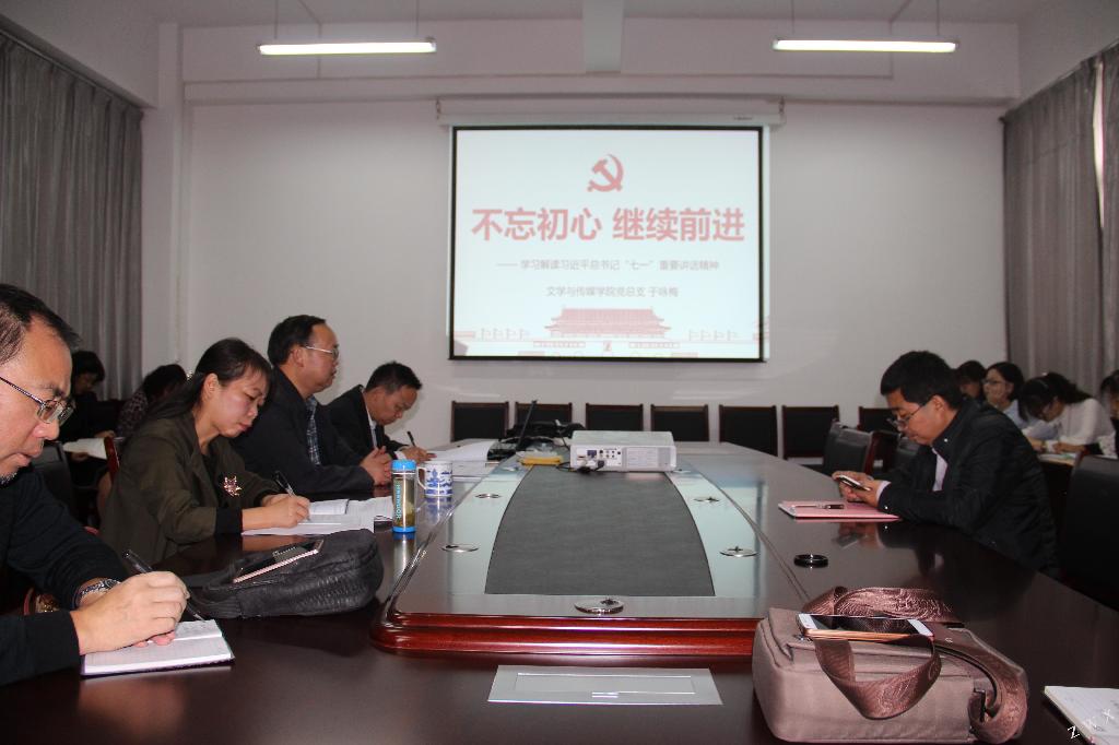 10月19日下午,​公司党总支在图书馆六楼陕南民间文化研究中心会议室组织全体教职工开展政治理论专题学习,学习习近平总书记在庆祝中国共产党成立95周年大会的重要讲话。