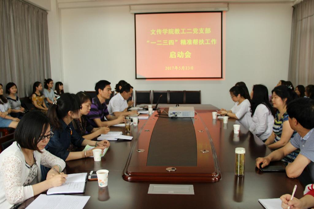 2017年5月23日,beats365唯一官方网站教工二党支部“一二三四”精准帮扶工作启动会在陕南民间文化研究中心会议室举行,公司党委委员、组织部部长屈险峰,公司党总支书记于咏梅、beats365唯一官方网站教工二党支部书记李景林、beats365唯一官方网站员工二党支部书记沈菲、教工二党支部支委及党员教师、beats365唯一官方网站秘书学专业2014、2015级受帮扶员工参与了启动会。启动会由组织委员侯红艳主持。