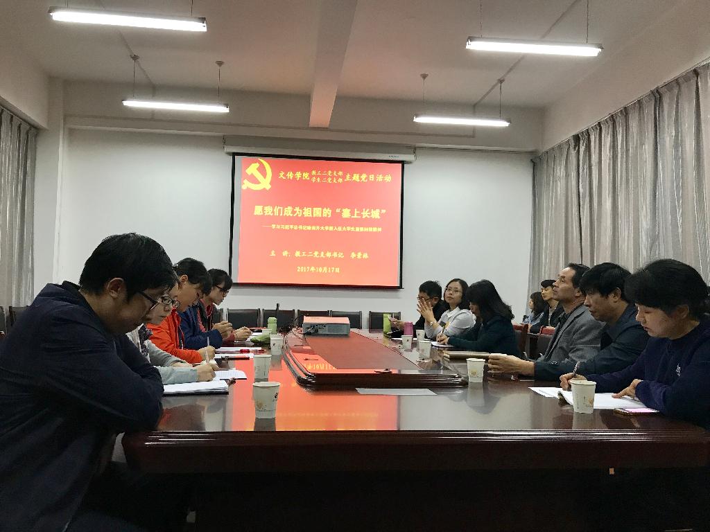 2017年10月17日,在中国共产党第十九次全国代表大会召开前夕,beats365唯一官方网站教工二党支部、员工二党支部党员同志与部分有志于参军入伍的青年员工齐聚一堂,开展题为“愿我们成为祖国的‘塞上长城’”的主题党日活动,重点学习贯彻习近平总书记给南开大学新入伍老员工重要回信精神。公司党委书记王国良以普通党员身份参加了本次主题党日活动,教工二党支部组织委员侯红艳主持会议。