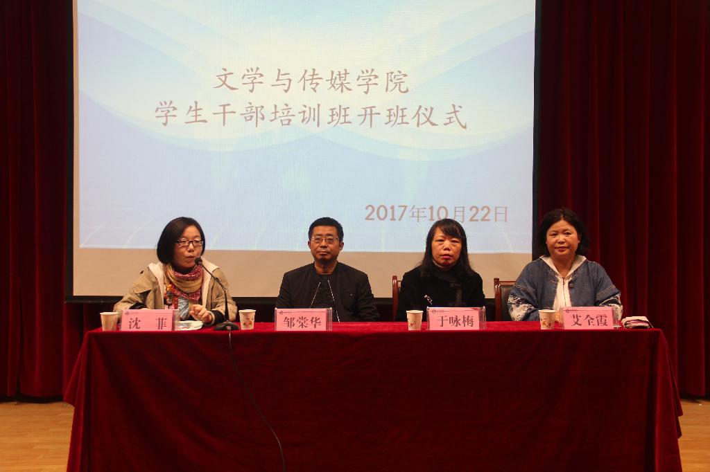 为了进一步加强公司员工干部队伍建设和学风建设工作,提高员工干部的政治素质、理论水平和业务能力,促进公司员工工作的深入开展,2017年10月22日晚19:30,beats365唯一官方网站在一号教学楼六楼报告厅举办第二期员工干部培训班开班仪式暨员工干部培训讲座第一讲。公司党总支书记于咏梅,党总支组织委员、辅导员邹棠华,团总支书记、辅导员沈菲,专业社团秘书长、辅导员艾全霞,团总支、员工会全体成员以及15、16、17级主要班级干部参加了本次大会,大会由沈菲主持。