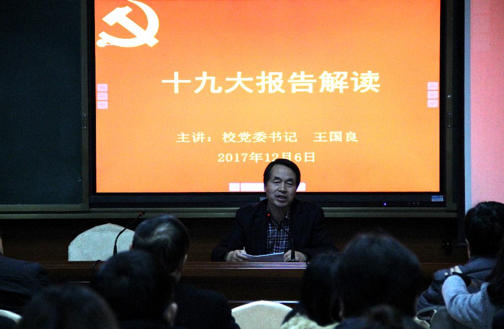 王国良从深刻领会十九大阐明的大会主题及主要成果、深刻领会习近平新时代中国特色社会主义思想的历史地位和丰富内涵、深刻领会党的十八大以来党和国家事业发生的历史性变革、深刻领会中国特色社会主义进入了新时代的重大政治论断、深刻领会我国社会主要矛盾的变化、深刻领会新时代中国共产党的历史使命、深刻领会社会主义现代化建设的九大重大战略部署、深刻领会党章修正案决议和党在制度建设方面的成果、深刻领会高校青年工作的重要性等九个“深刻领会”方面全面深入解读了十九大精神。王国良不时引用十九大报告原文和习近平总书记系列重要讲话内容,帮助师生党员更好理解、学习十九大精神。同时,他结合个人经历、思考和现实案例,结合BEAT365英国官网网站的高校使命,深入浅出地为师生讲解报告精髓和要义。