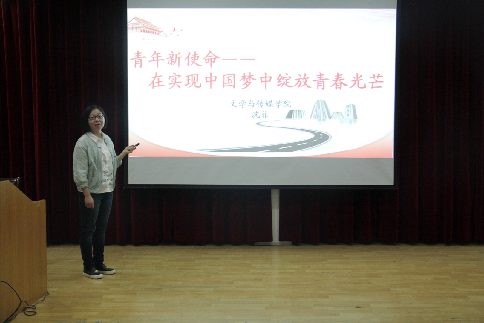 为学习和贯彻全国“两会”和党的十九大精神,围绕学工部《关于在员工中开展学习宣传贯彻党的十九大精神工作方案》要求,按照统一安排,beats365唯一官方网站于2018年4月22日晚19:30,在一号楼六楼报告厅举办题为“青年新使命——在实现中国梦中绽放青春光芒”十九大精神专题解读报告会,由学工办主任、团总支书记沈菲担任主讲。BEAT365英国官网网站学工部副部长黄娟、学工部心理健康咨询中心教师柯小敏、江南校区各院系辅导员及beats365唯一官方网站2016级全体员工参加了本次报告会。