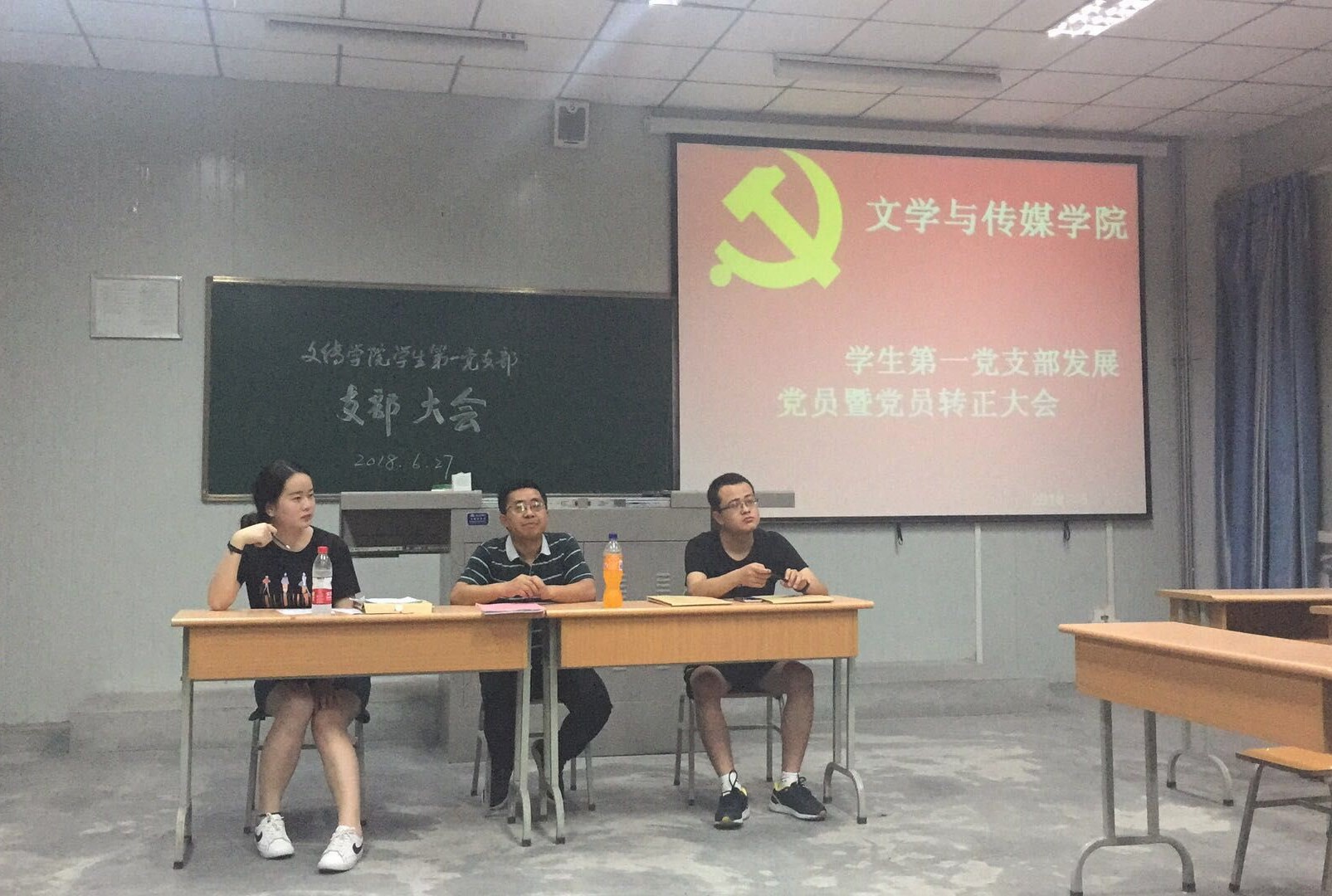 2018年6月27日晚,beats365唯一官方网站员工第一党支部在1013教室召开了中共预备党员转正暨接收中共预备党员大会。员工第一党支部全体正式党员、预备党员及拟接收中共预备党员参加了本次大会。大会由支部书记邹棠华主持,主要讨论中共预备党员陈佳瑶、黄思钧、邢云芸三位同学的转正问题及刘昱伶、钟博雅、李佳格、吴佳昊四位同学接收为中共预备党员问题。