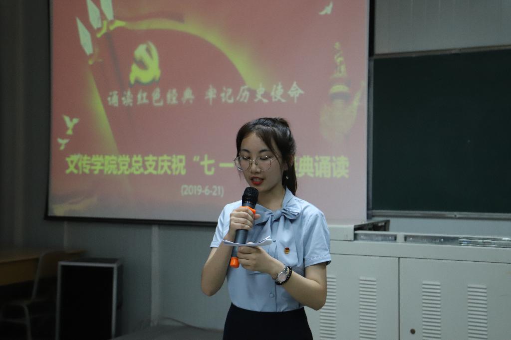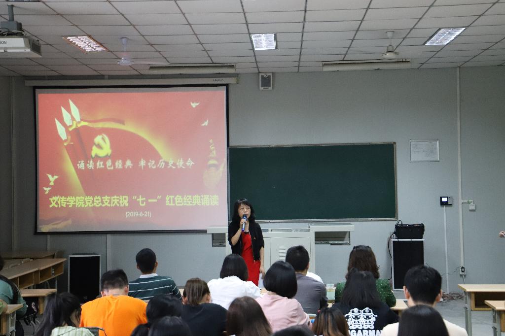 七月,见证给岁月的是一串串永远的火红,澎湃在我们心头的是无休无止的涛声。为庆祝中国共产党建党九十八周年,以诵读红色经典的形式,教育党员不忘初心,牢记使命,砥砺前行跟党走;在诵读红色经典中回望激情燃烧的岁月,缅怀革命先驱光辉的业绩,以红色经典促党性修养。2019年6月21日,beats365唯一官方网站在江南校区10号教学楼1025教室开展“诵读红色经典,牢记历史使命”庆祝“七一”红色经典诵读主题党日活动。公司党总支委员会、党支部委员会成员,员工第一、第二党支部员工党员,教工第一、第二党支部部分党员,第18期发展对象、第47期积极分子参与了本次诵读活动。本次活动由2017级秘书学一班员工杨彩艺、党卓文主持。