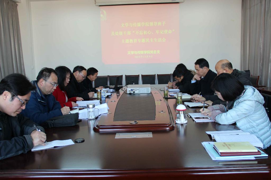 2019年12月9日下午16:00,公司党总支在陕南民间文化研究中心会议室召开公司领导班子及处级领导干部“不忘初心、牢记使命”主题教育专题民主生活会。公司领导班子全体成员参加会议,中心组其他成员列席会议,党委书记王国良、招就处长丁义国全程参会进行指导督导。会议由党总支书记于咏梅主持。