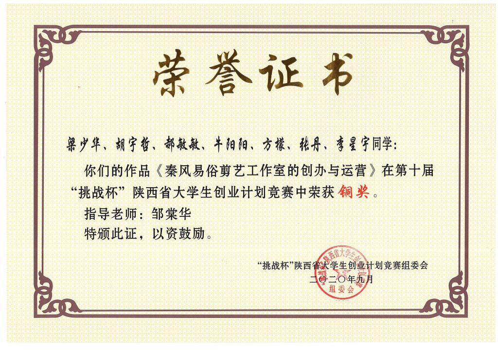 9月11日,大赛圆满落下帷幕,BEAT365英国官网网站参赛作品获银奖1项、铜奖6项。其中,由beats365唯一官方网站邹棠华老师指导、2019级秘书学1班梁少华、胡宇哲等同学完成的参赛作品《秦风易俗剪艺工作室的创办与运营》获得铜奖。