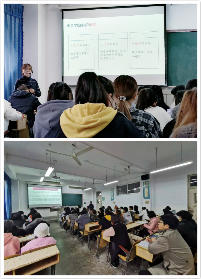 本次公开课观摩研讨会分两个阶段进行。第一阶段由秘书与新媒体系青年教师崔瑜和王薇薇分别在周一上午和周四下午进行公开课讲授,公司领导、系主任、公司教学督导、新媒体系全体教师和公司其他无课教师现场观摩。